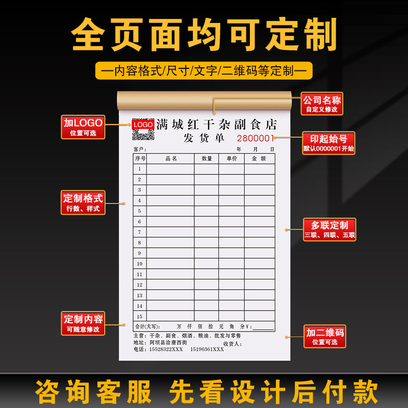 【粮油批发专用发货单】定制副食店送货销货清单仓库配送结算单据