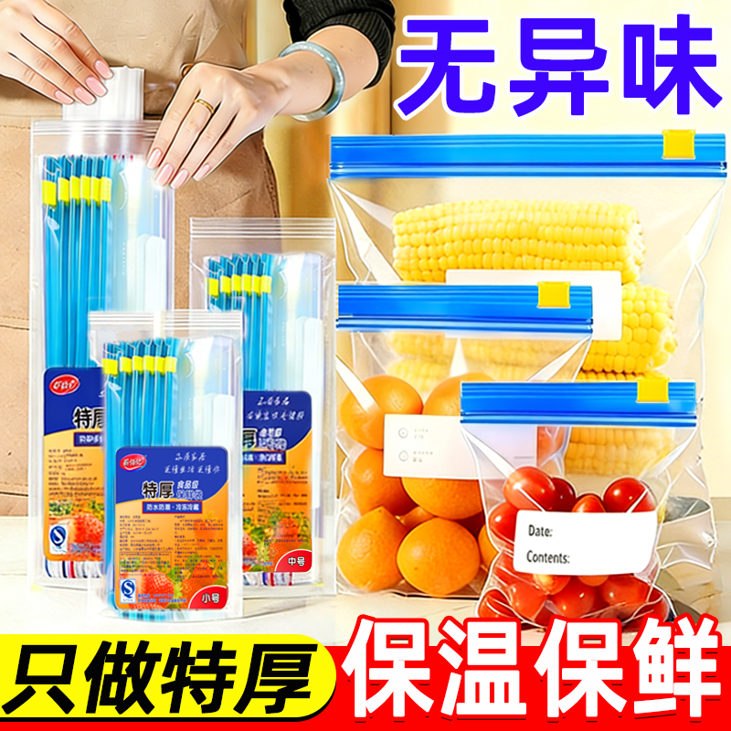 保鲜袋密封袋食品级家用自封塑封冰箱专用加厚保鲜袋带封口分装袋