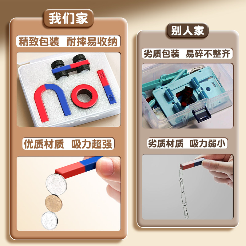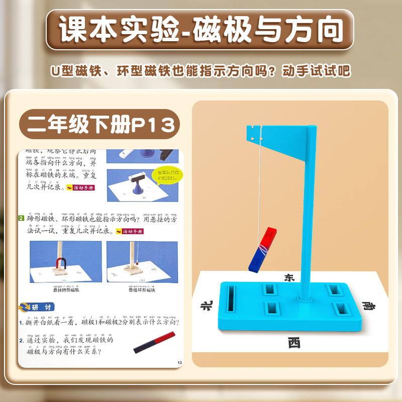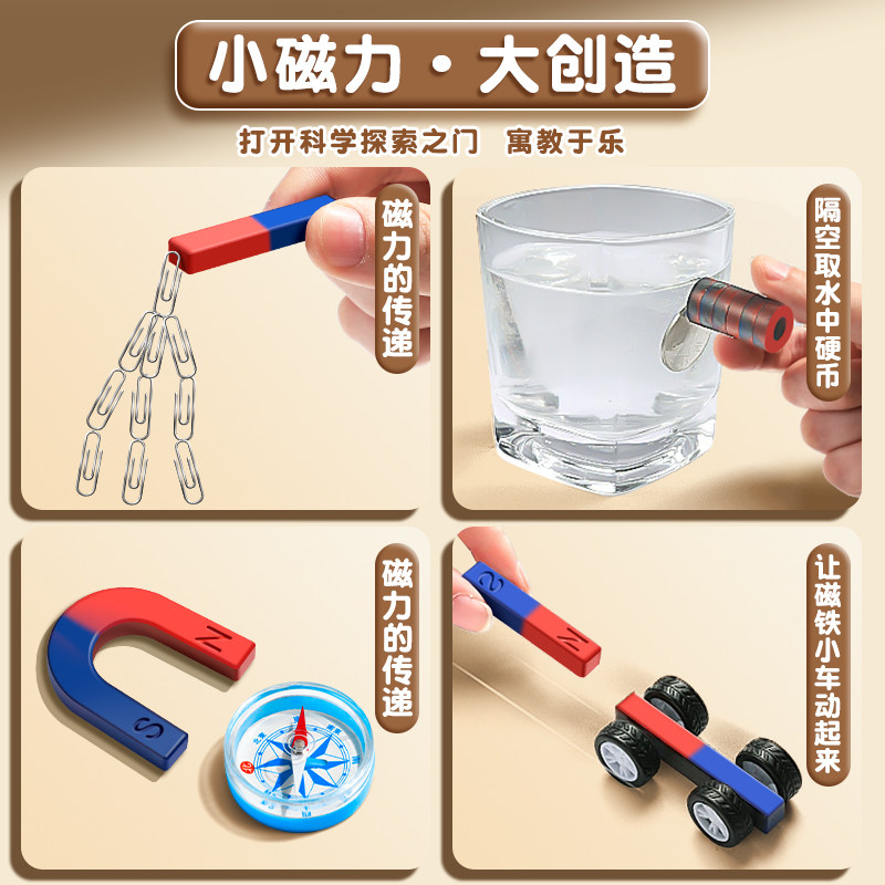 小学二年级下册磁铁实验套装物理实验强磁科学小实验套装学生吸铁石磁悬浮马蹄U型条形吸铁石指南针趣味玩具