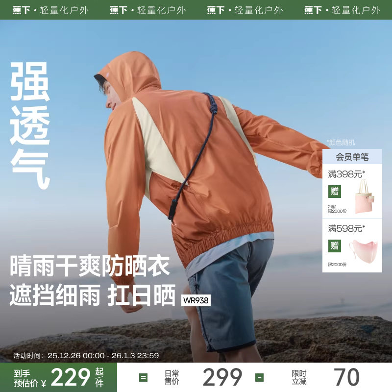 蕉下轻薄防泼水防晒衣男WR938户外跑步骑行皮肤衣透气速干防晒服