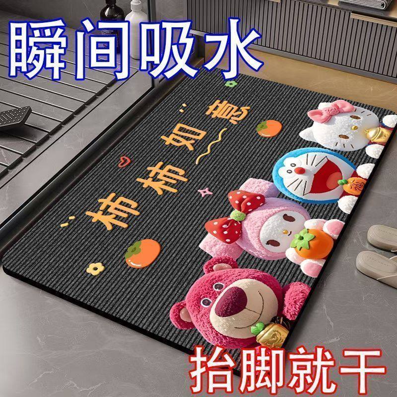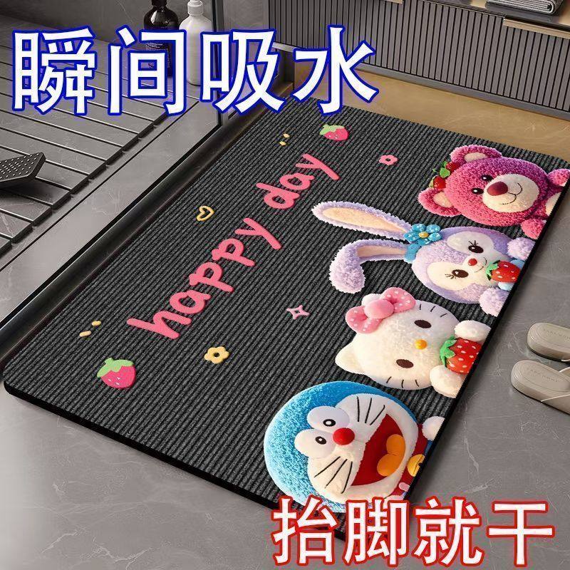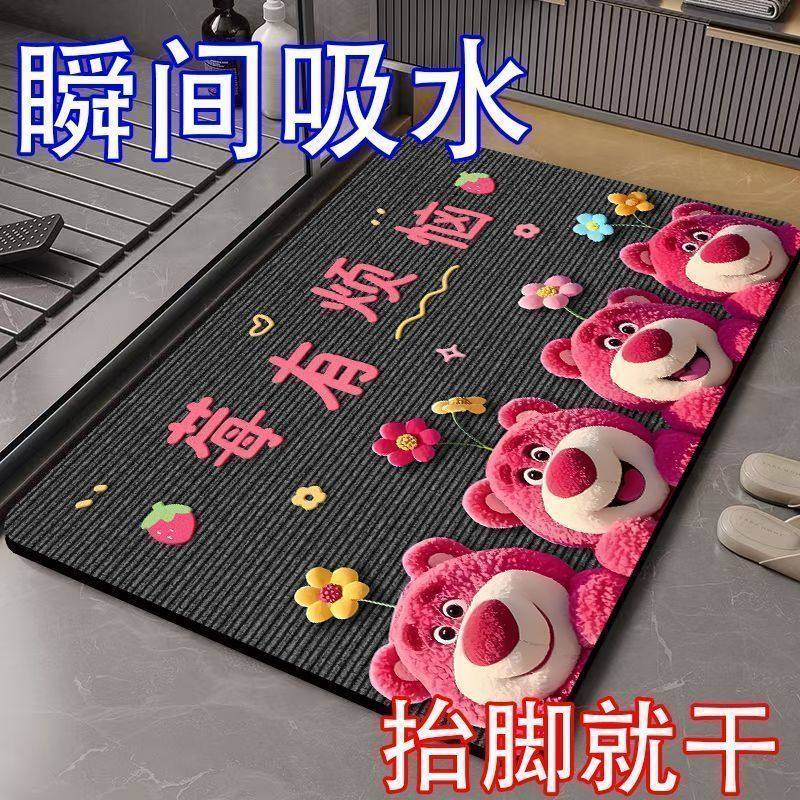 草莓熊硅藻泥吸水地垫卡通浴室脚垫卫生间门口防滑地毯厕所门垫