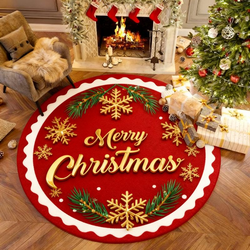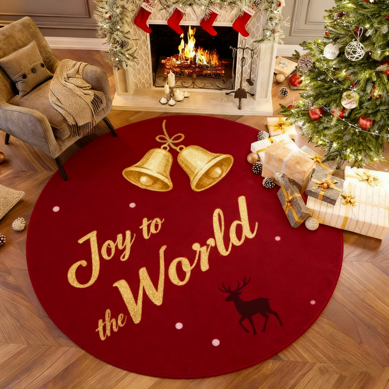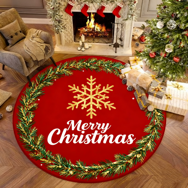圣诞风地垫圆形圣诞树垫子氛围红色地毯卧室装饰布置脚垫家用防滑