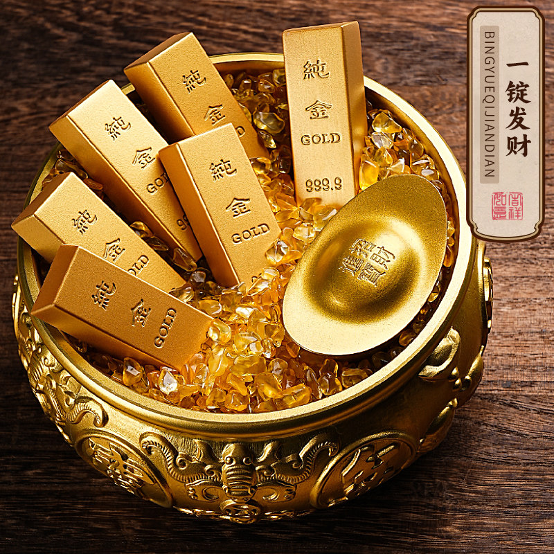 仿真沙金金条聚宝盆摆件实心金砖道具金店样品招财乔迁新居礼品