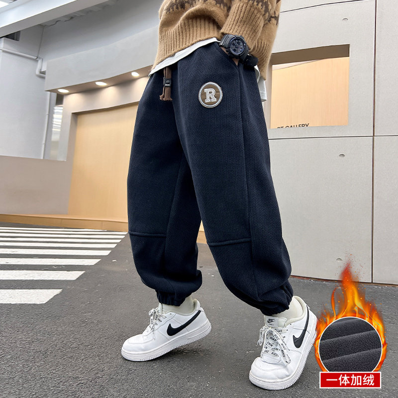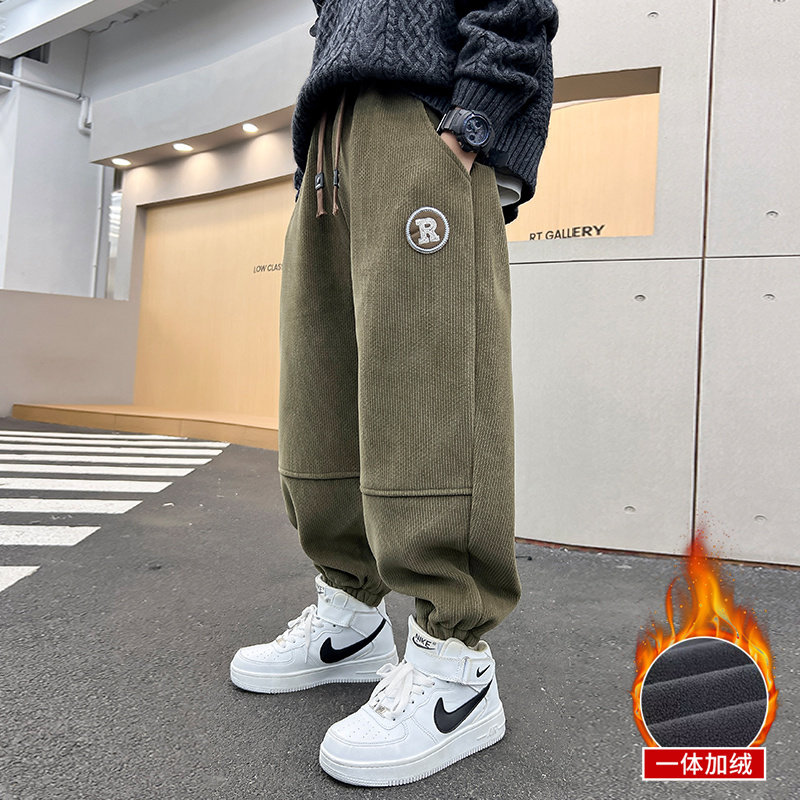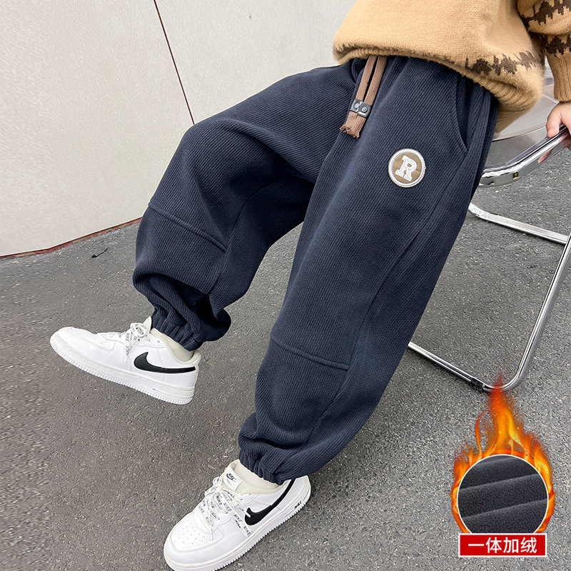 男童加绒裤子2025秋冬新款中大童灯芯绒运动裤儿童一体绒长裤帅气