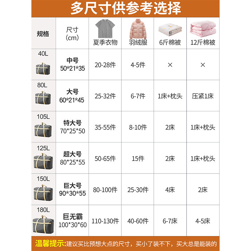 巨无霸大容量被子收纳袋棉被衣服防尘储物袋搬家打包袋手提行李包