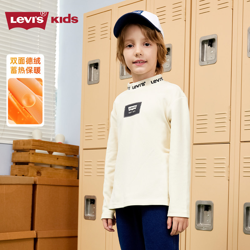 【加绒】Levis李维斯童装男童长袖t恤新款德绒衣服儿童打底衫女童