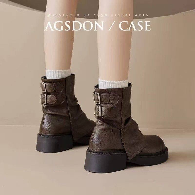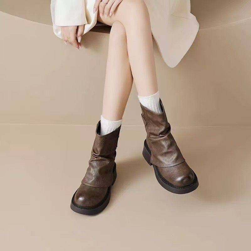 马丁靴女厚底短靴2025年秋冬新款短筒复古棕色堆堆靴西部靴裤管靴