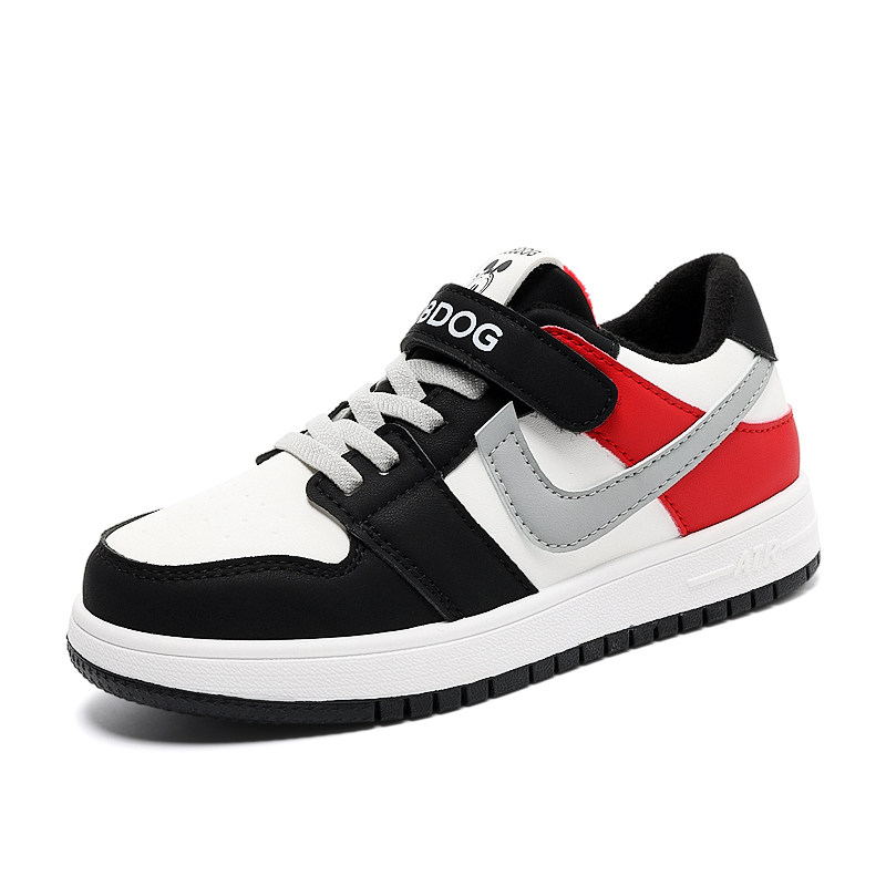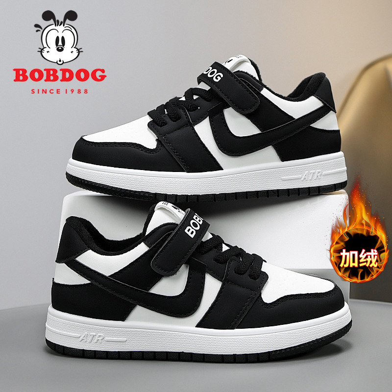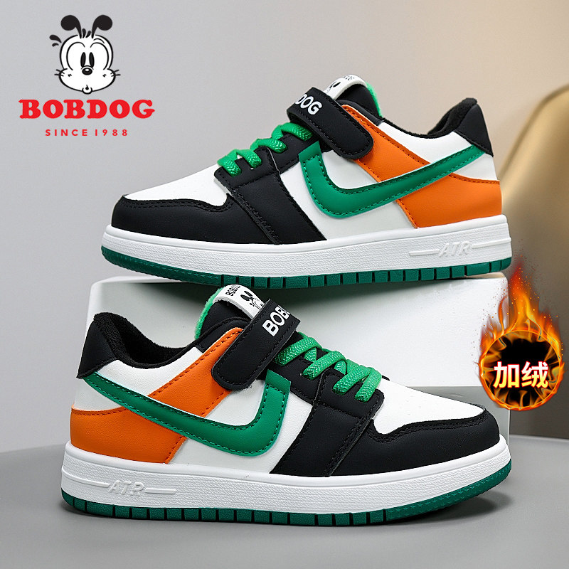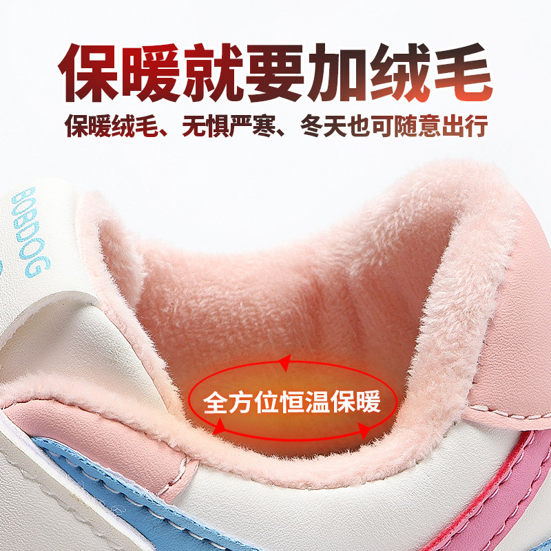 巴布豆男童运动鞋加绒保暖二棉鞋男孩AJ儿童鞋子皮面冬季高帮红色