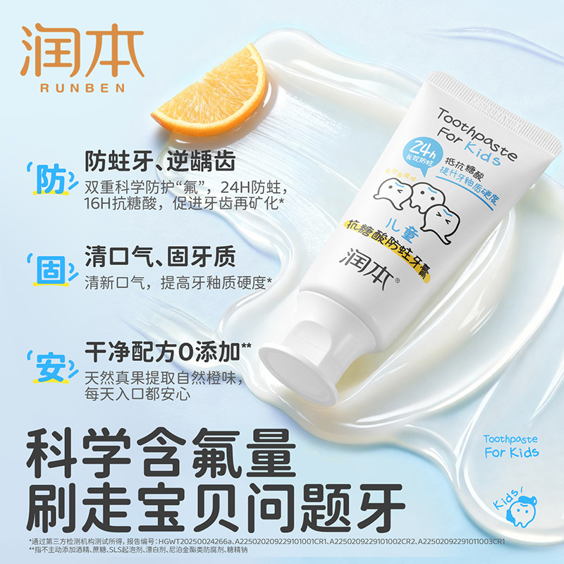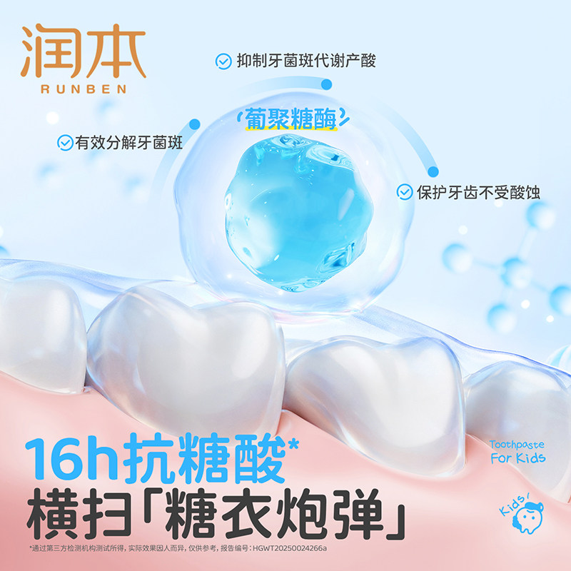 润本儿童牙膏3到6到12岁含氟换牙期抗糖防蛀牙膏婴儿奥拉氟牙膏
