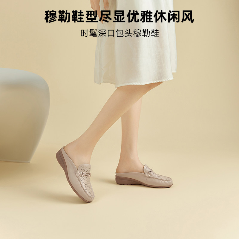 【羊皮】真皮包头半拖鞋女夏季2025年新款坡跟单鞋乐福鞋穆勒鞋子