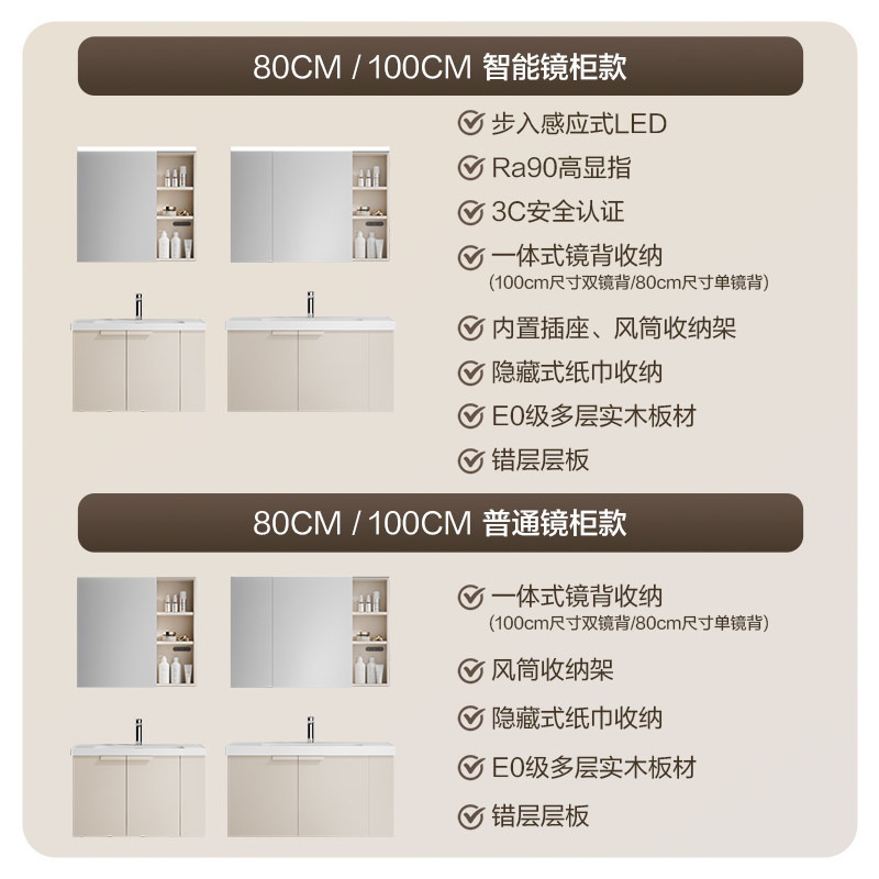 恒洁卫浴陶瓷一体盆浴室柜卫生间侧收纳柜卫浴柜抗菌洗手台盆组合