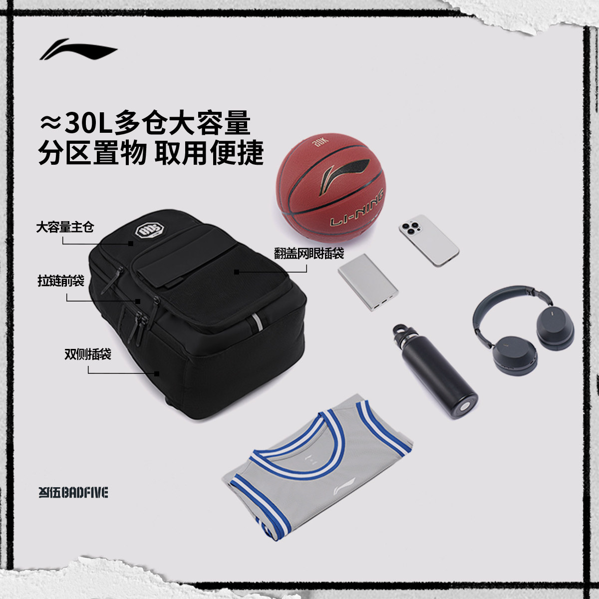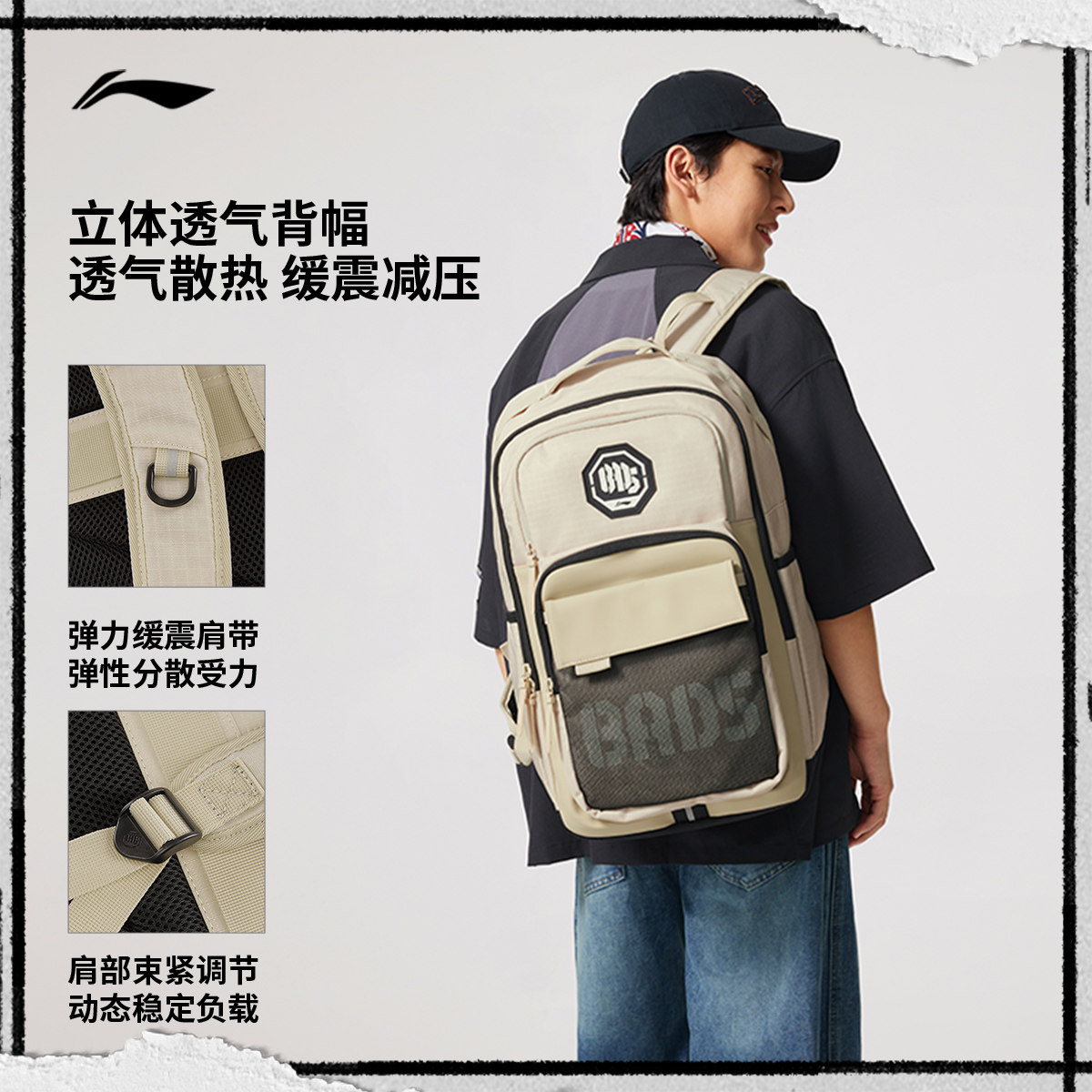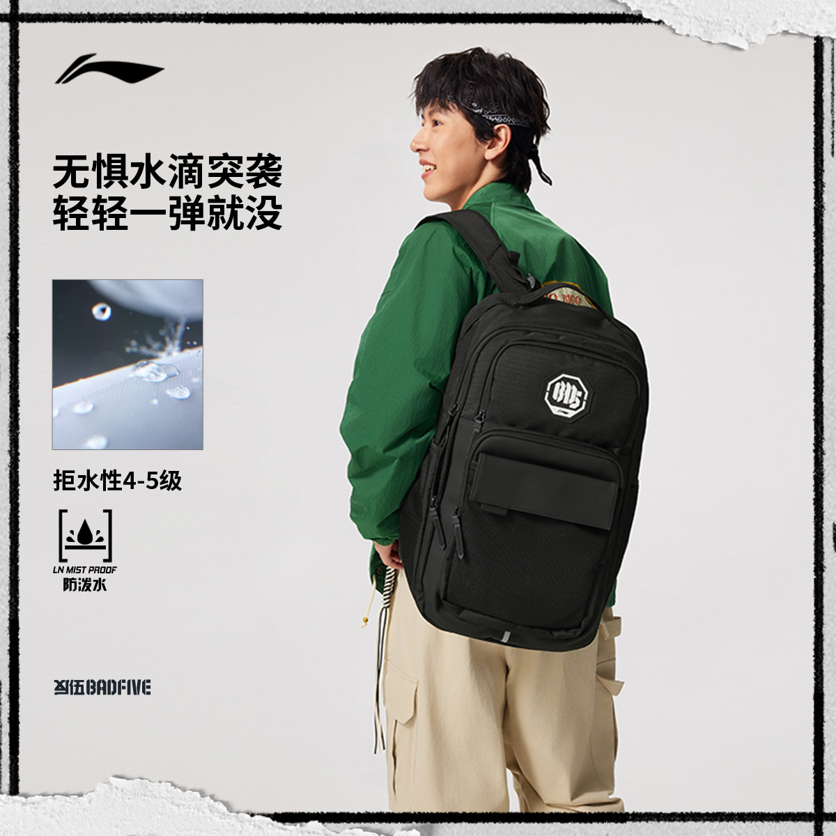 李宁反伍BADFIVE双肩包男包女包2026新款背包学生书包反光运动包
