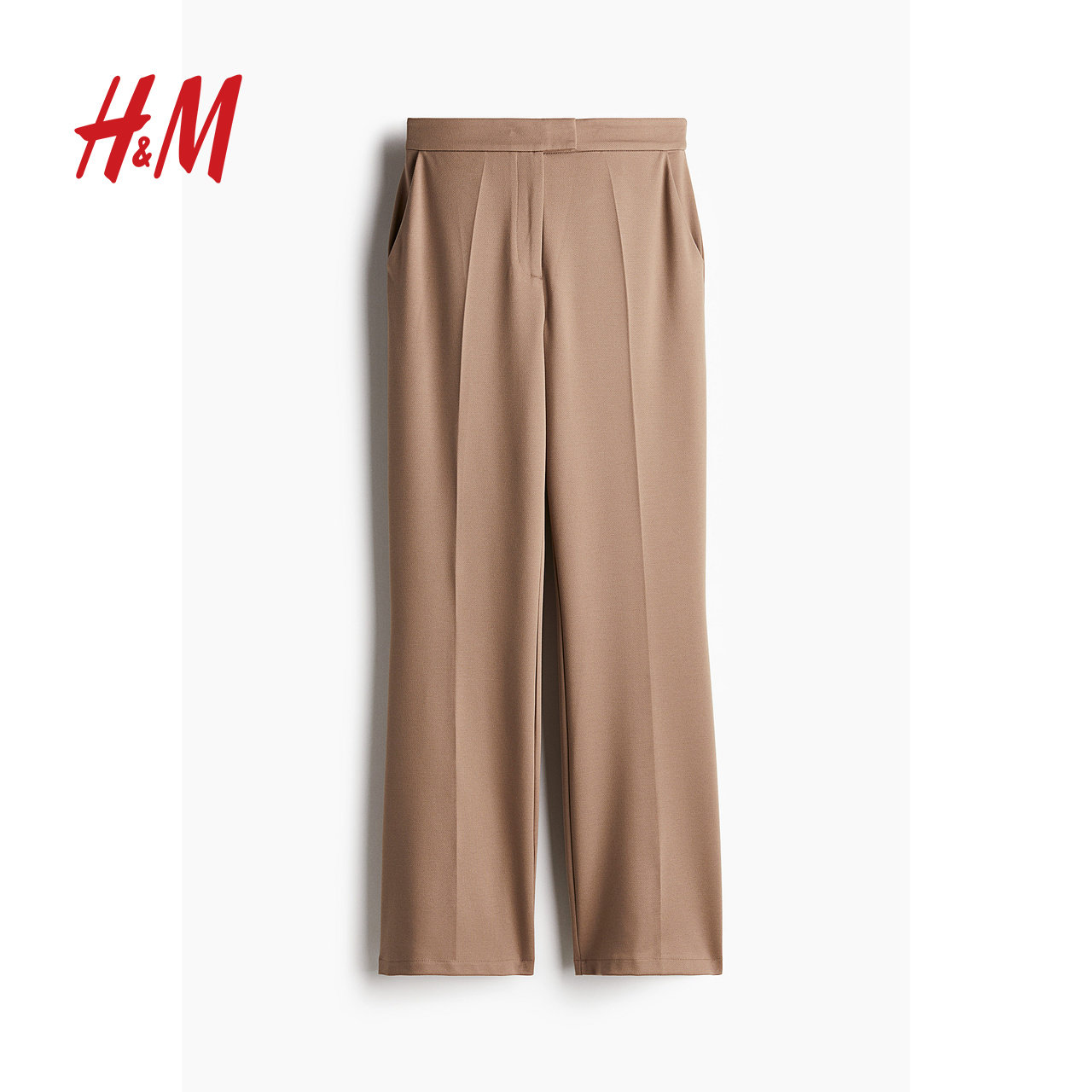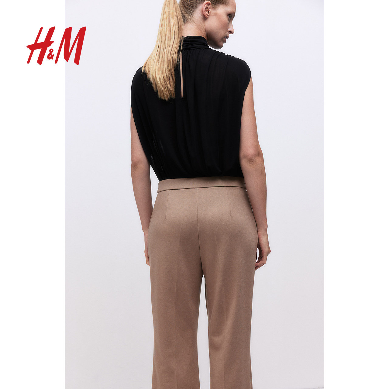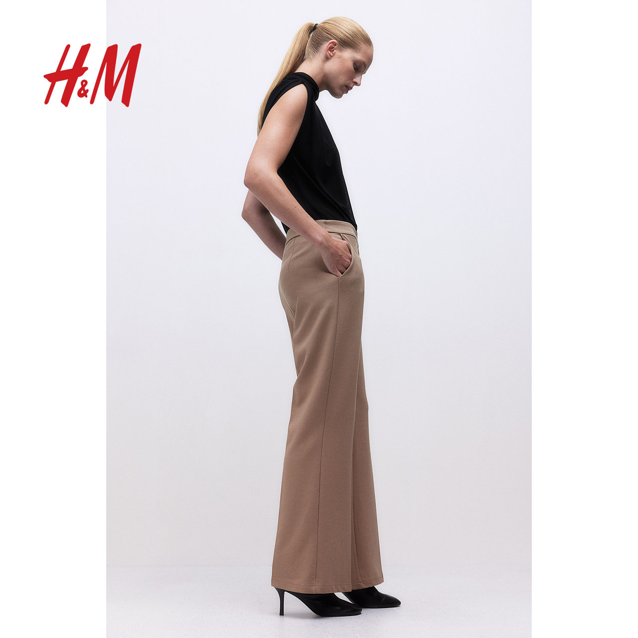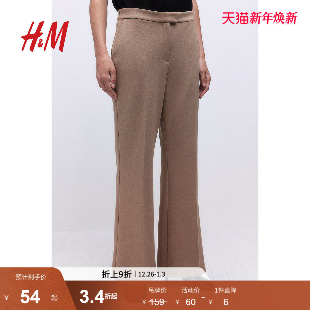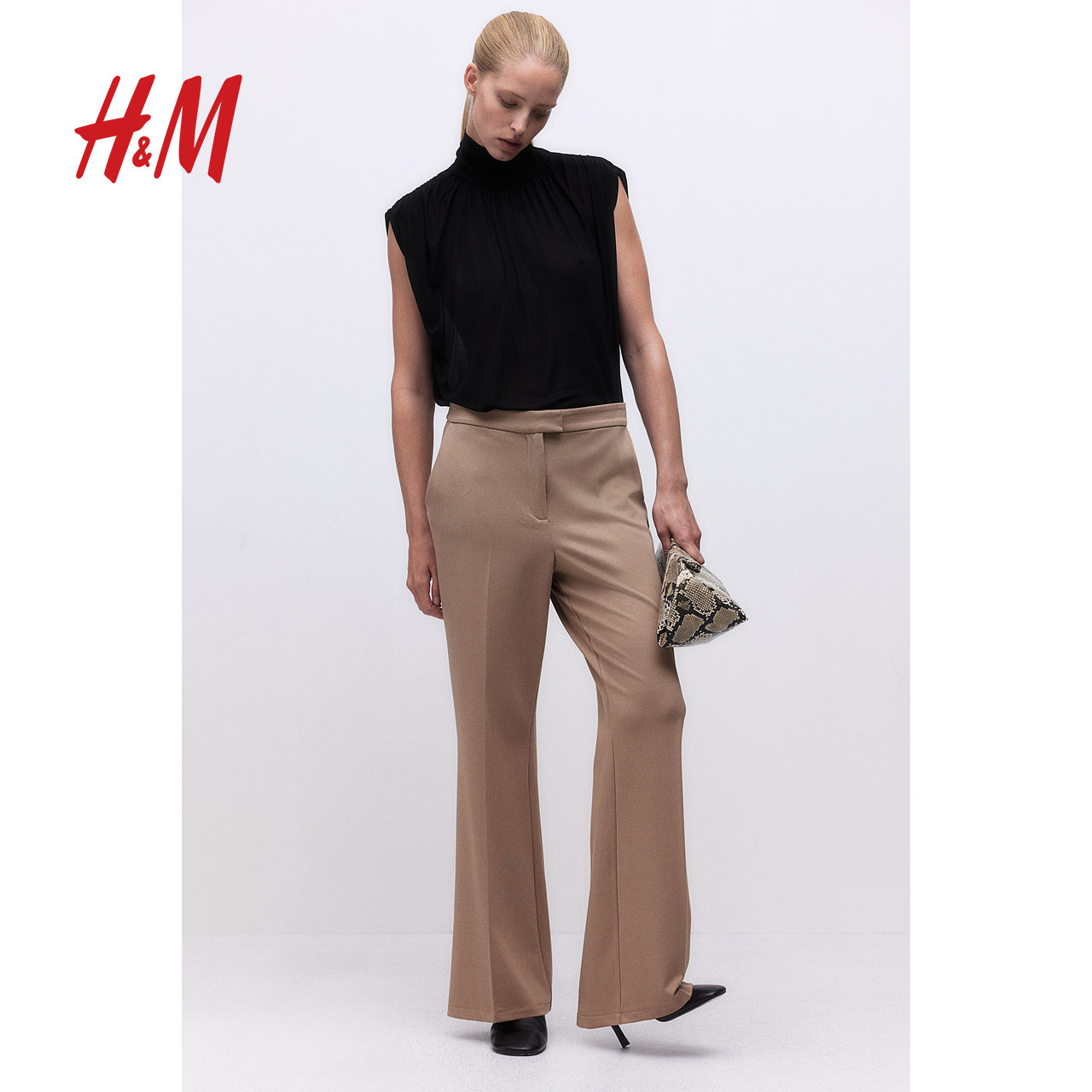 HM女装休闲裤冬季休闲修身绉织喇叭裤舒适西裤1242090