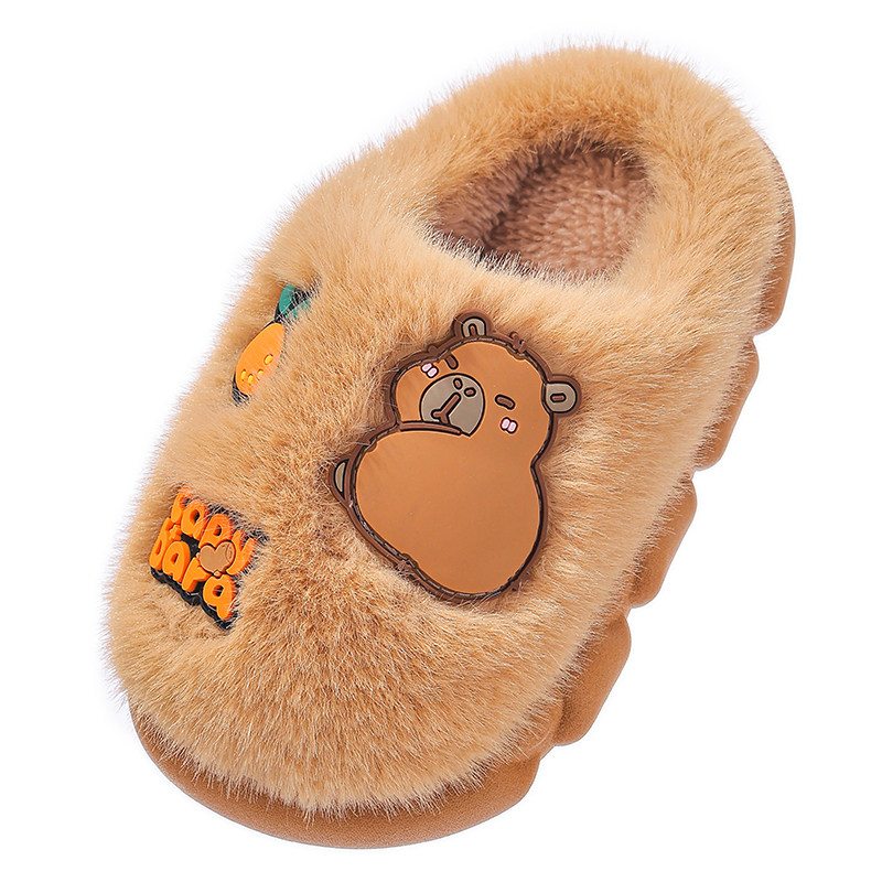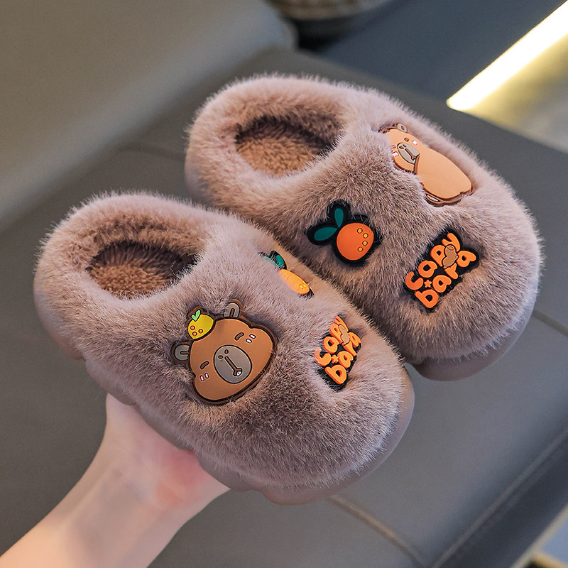卡皮巴拉儿童棉拖鞋男童卡通可爱防滑室内亲子女宝宝毛毛拖鞋冬季