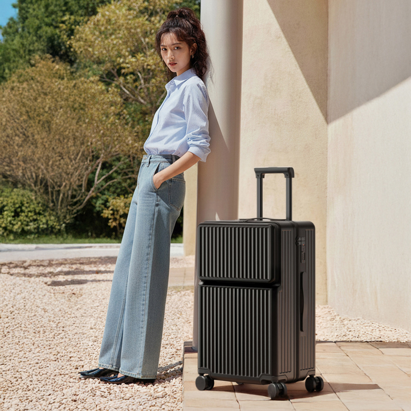 新款前开口行李箱24多功能拉杆箱小型20寸可登机旅行箱密码箱男女