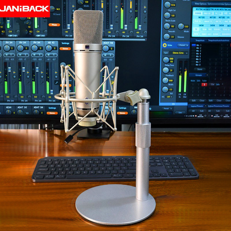 银色电容话筒支架u87103麦克风支架通用可升降万向加重桌面支架