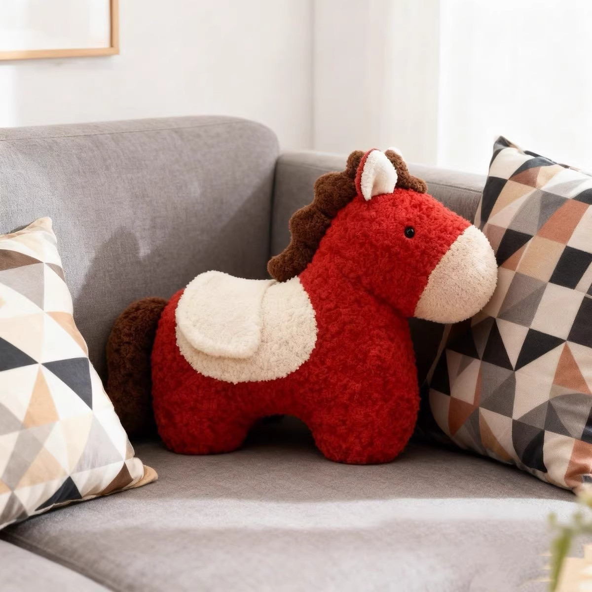 红色新年礼物马年吉祥物抱枕毛绒玩偶沙发客厅装饰摆件小宝马靠枕