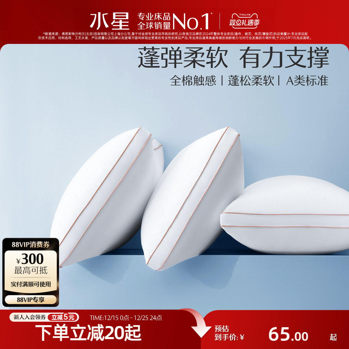 水星家纺A类枕头抗菌防螨全棉枕芯成人枕学生宿舍呵护颈椎枕对枕