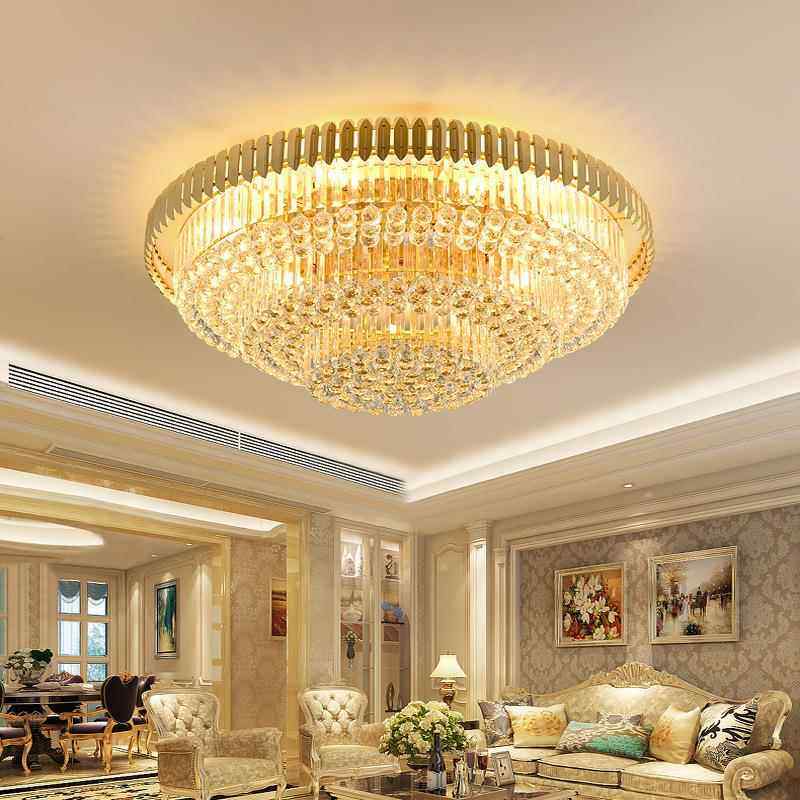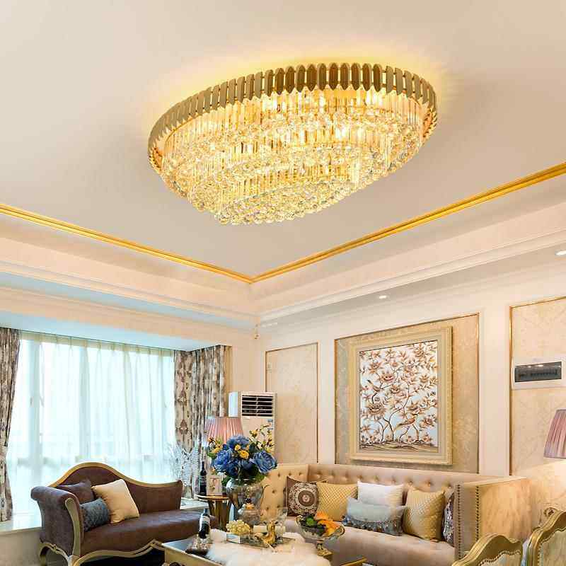 新款轻奢水晶吸顶灯客厅卧室圆形LED吸顶椭圆形酒店工程灯饰灯具