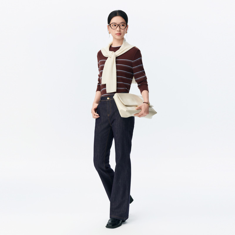 NAERSI娜尔思牛仔裤喇叭裤流行烫钻装饰修身显腿直2026年春季新款