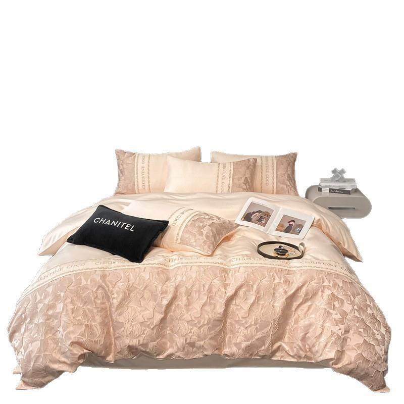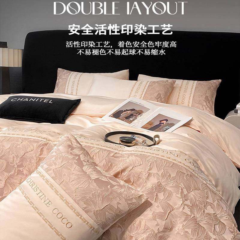 夏季冰丝提花床上四件套2025新款凉感床单被套罩轻奢高级床品