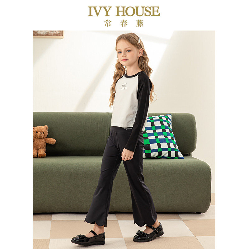IVY HOUSE常春藤儿童装女童春秋季新款 曲牙边喇叭裤子长裤亲子装