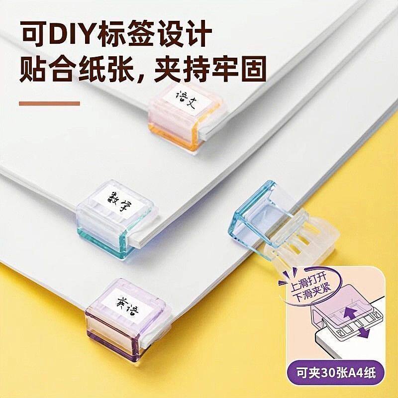 糖果透明推推夹防卷试卷固定器收纳推拉彩色夹子a4活页夹推夹器
