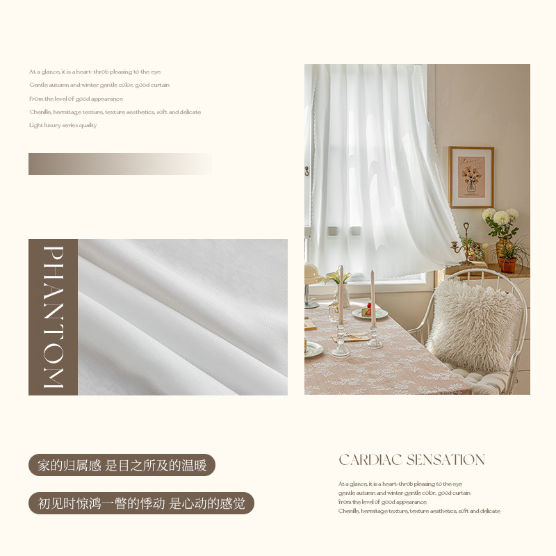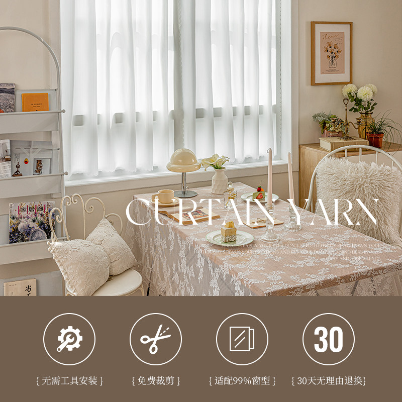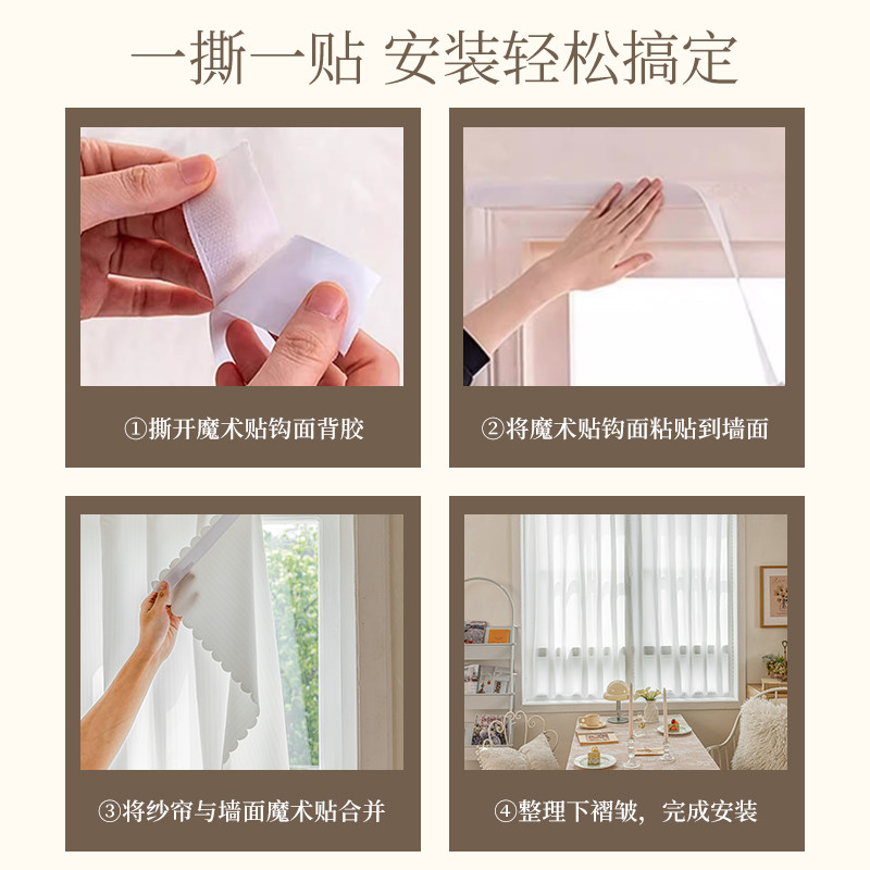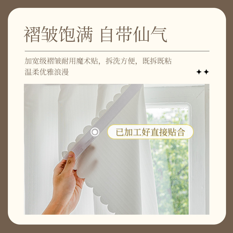 自粘窗帘纱帘透光不透人魔术贴免打孔防晒阳台飘窗幻影白色隔热