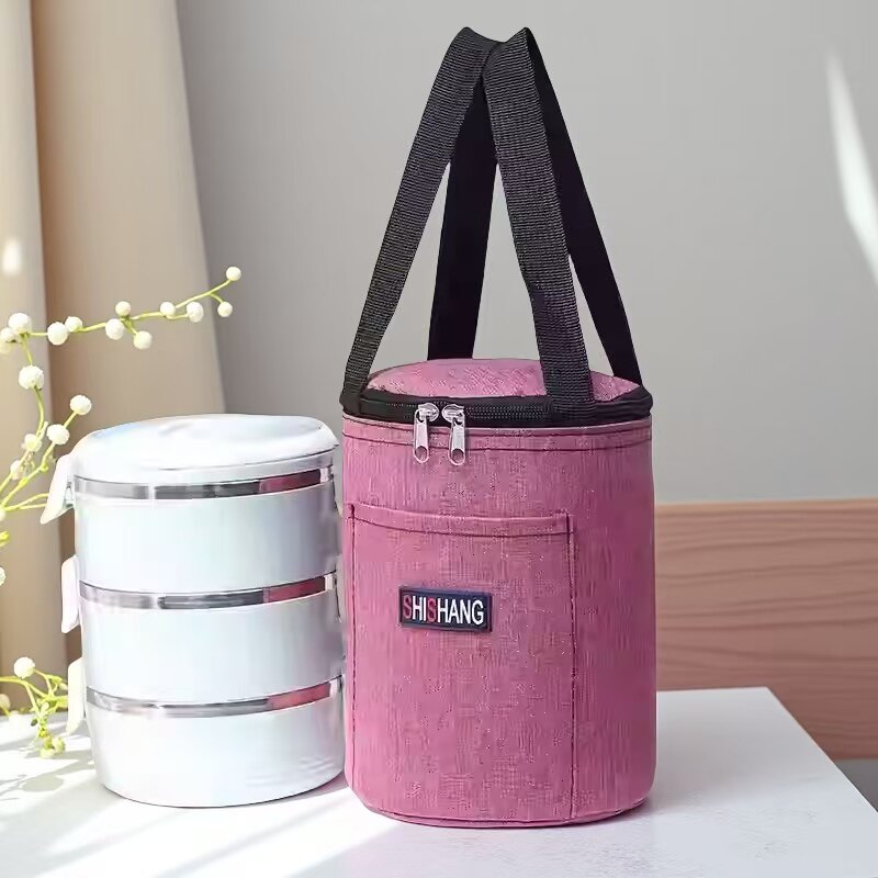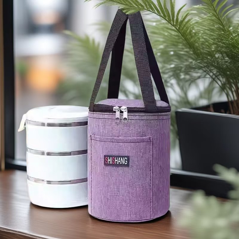 饭盒手提包圆形保温袋铝箔加厚便当包上班族学生带饭大容量手拎筒
