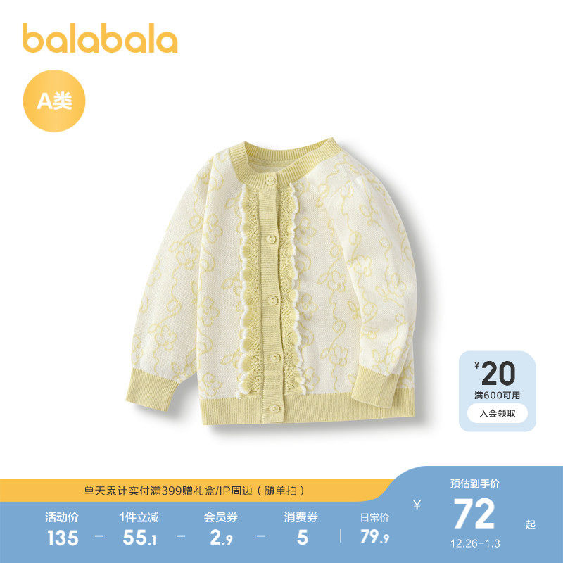 巴拉巴拉宝宝毛衣婴儿针织衫薄开衫女童秋装木耳边甜美精致时髦萌