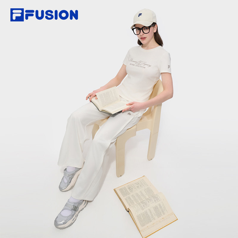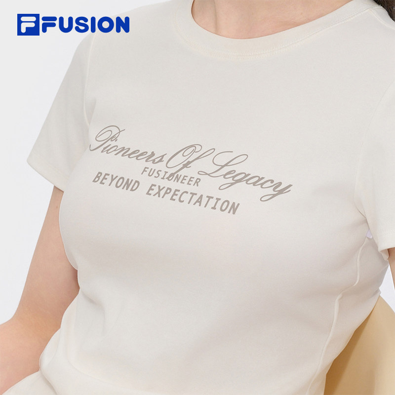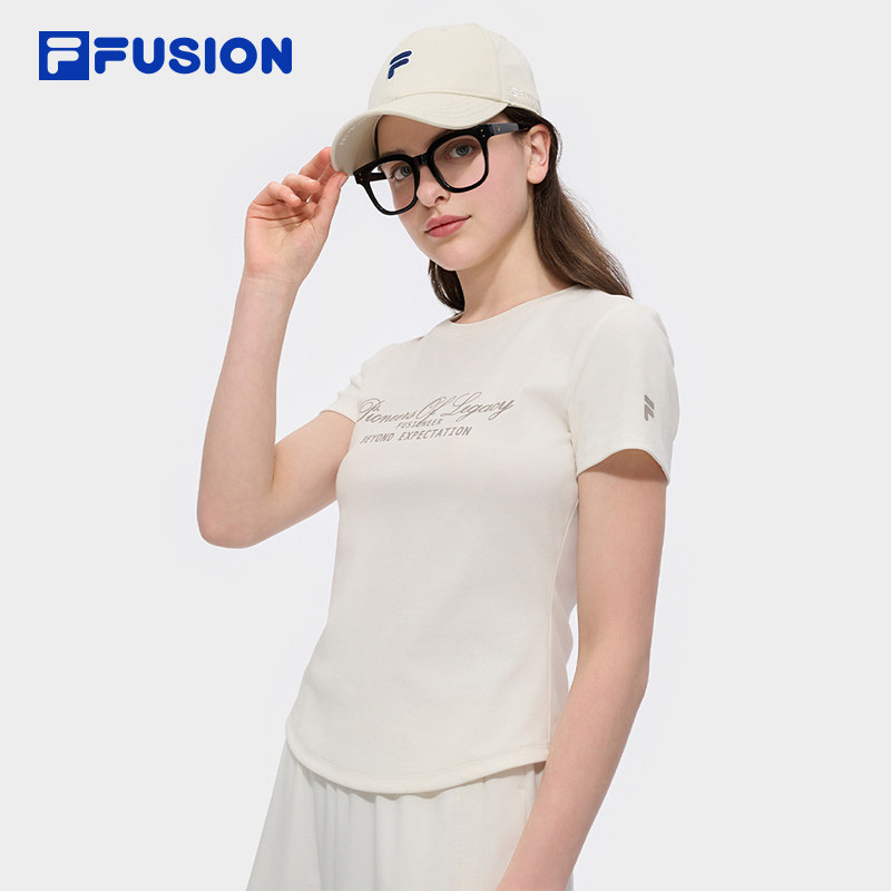 FILA FUSION斐乐潮牌女子针织短袖2025夏新款时尚半袖修身显瘦T恤