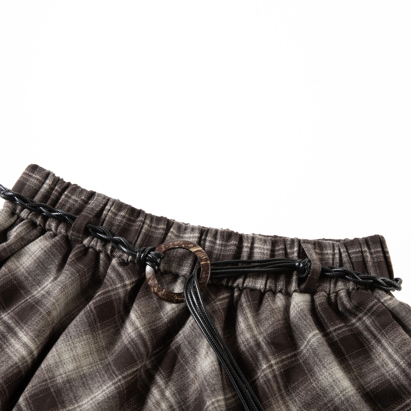 三福格子长裙女2025新款冬季气质流苏摆不规则半身裙子女装509092