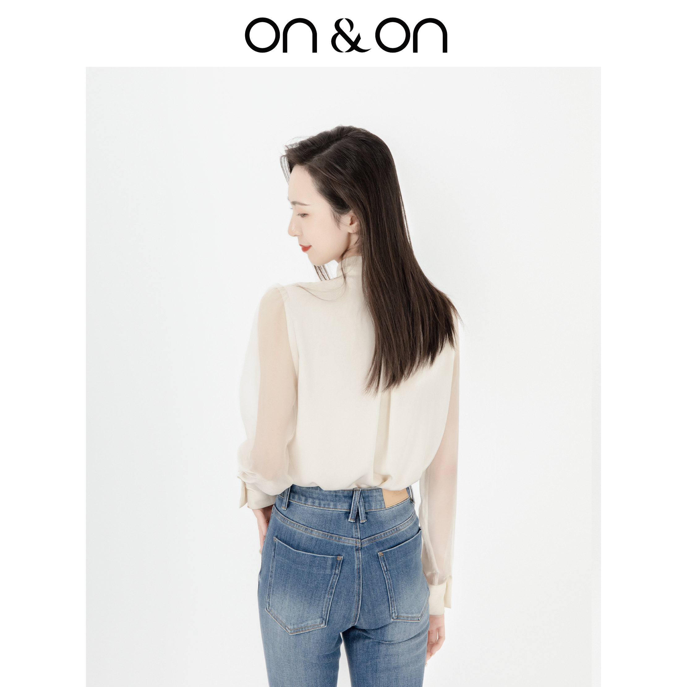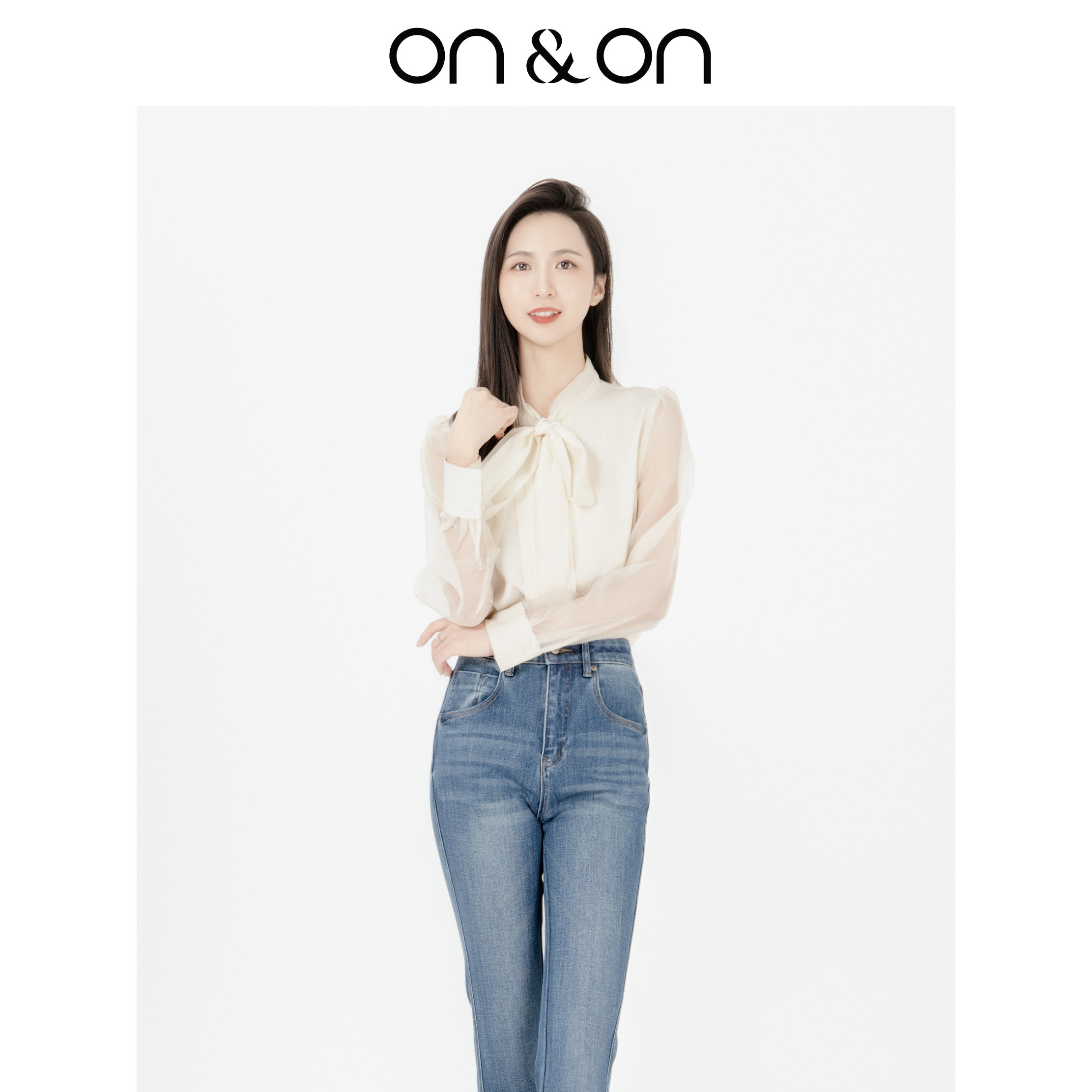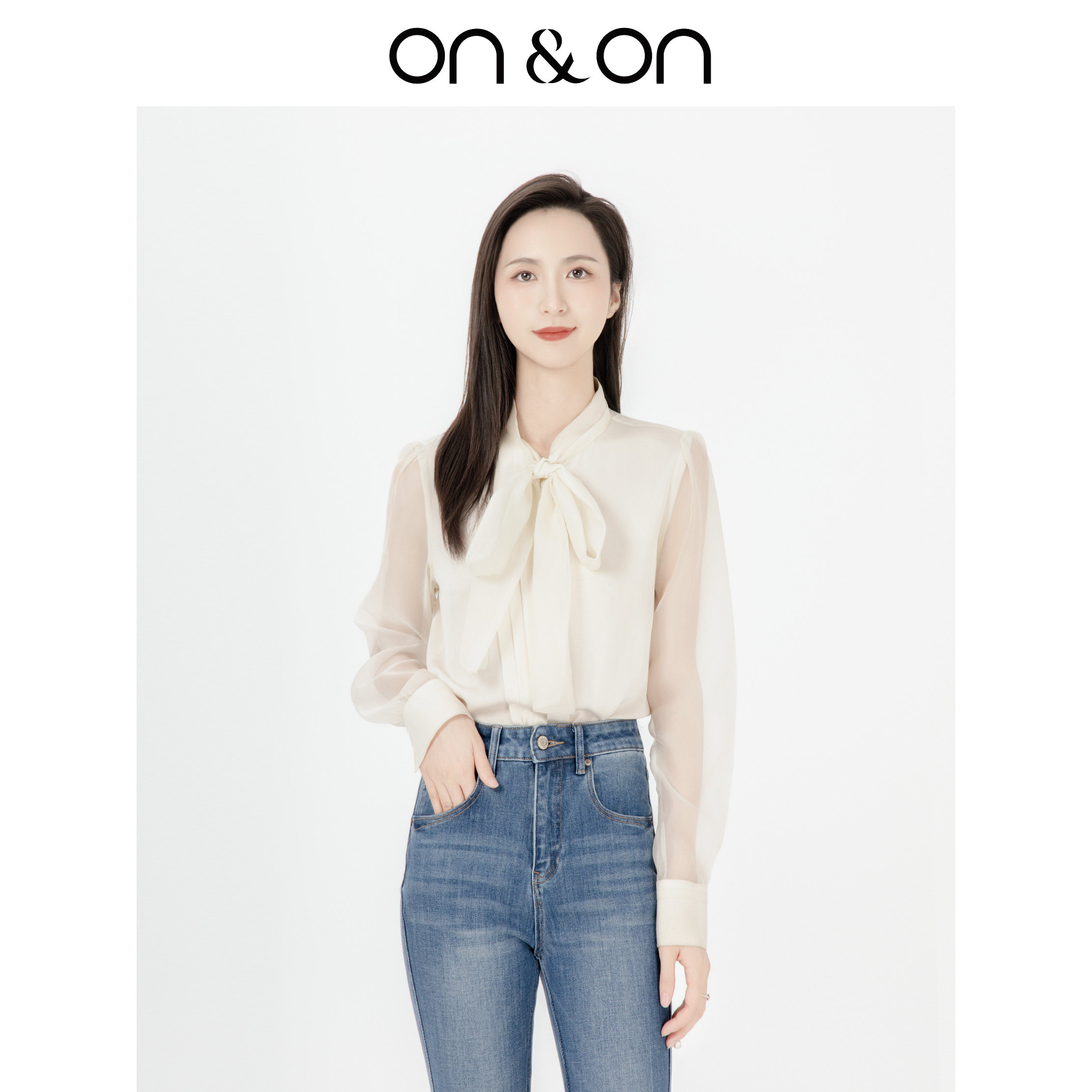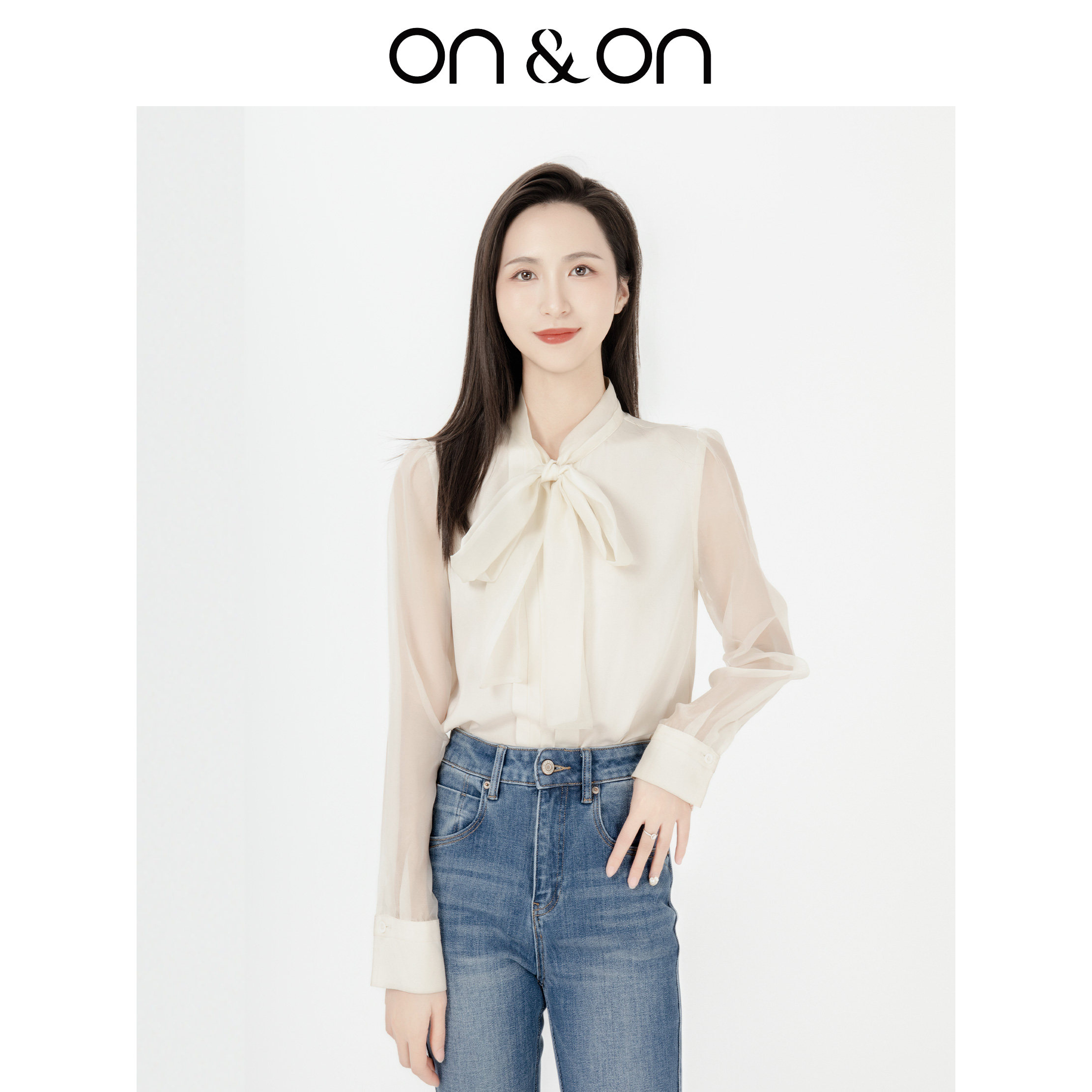 ON&ON/安乃安2025秋季新款法式蝴蝶结系带气质泡泡袖宽松衬衫