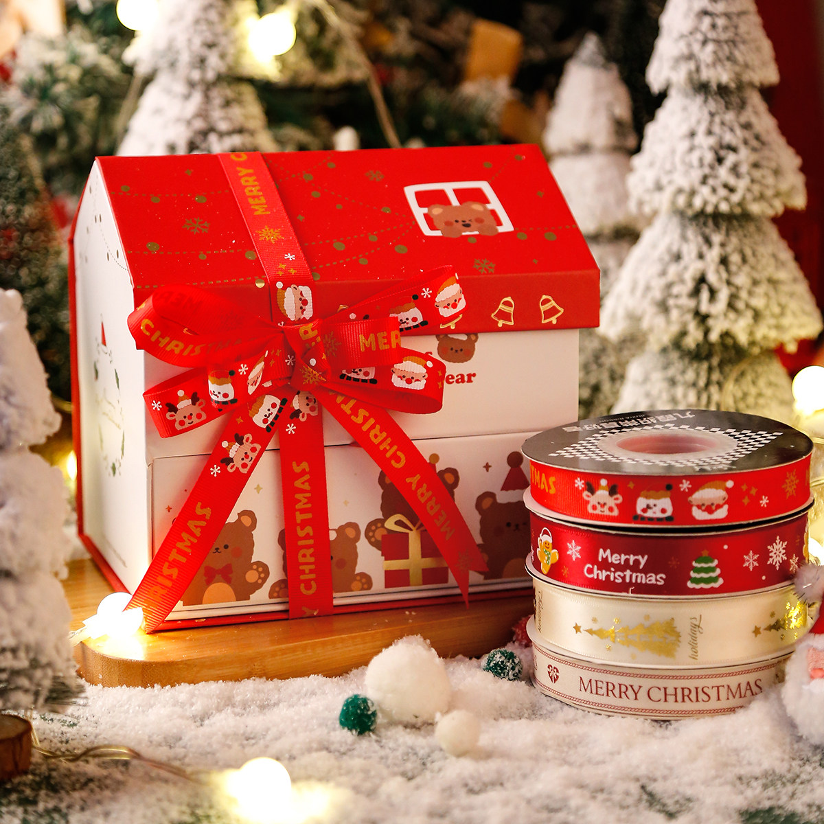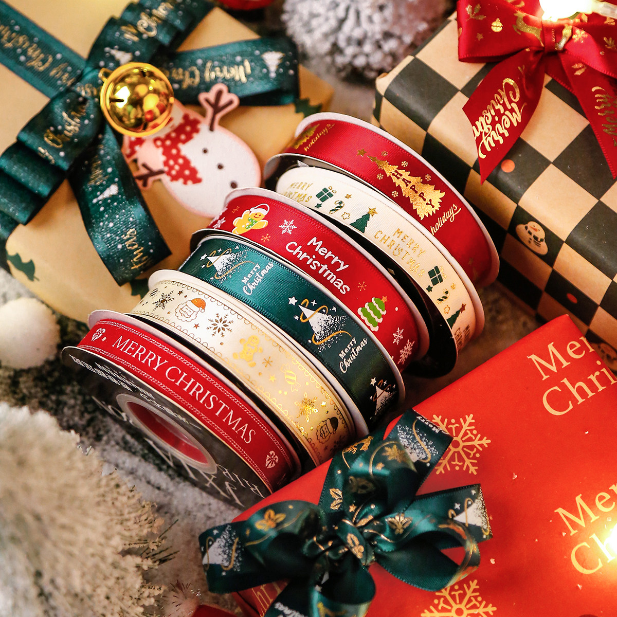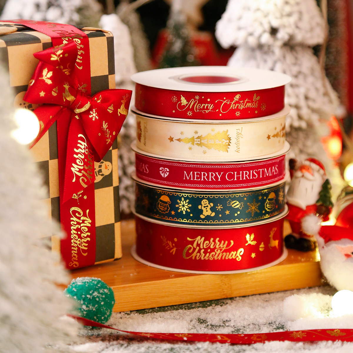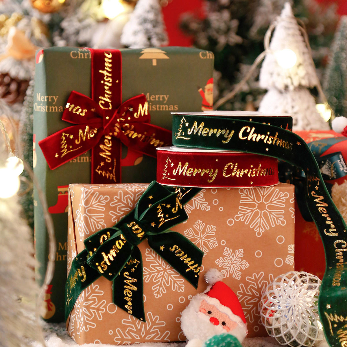 圣诞丝带装饰鲜花蛋糕包礼物礼品手工DIY蝴蝶结缎带红色绿色红绿