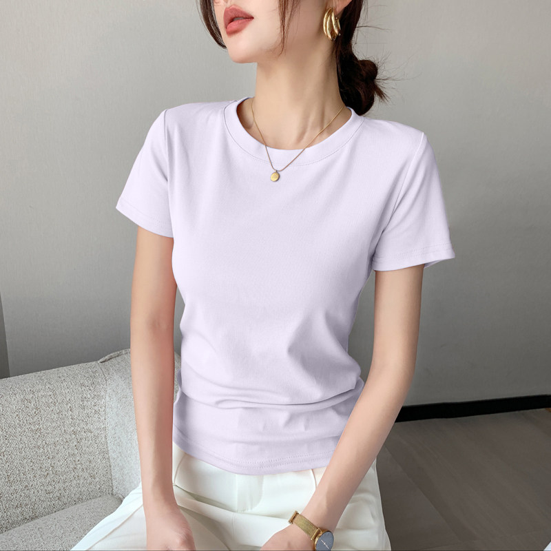 KMV真维斯白色短袖女2025春夏新款时尚百搭修身正肩圆领半袖T恤