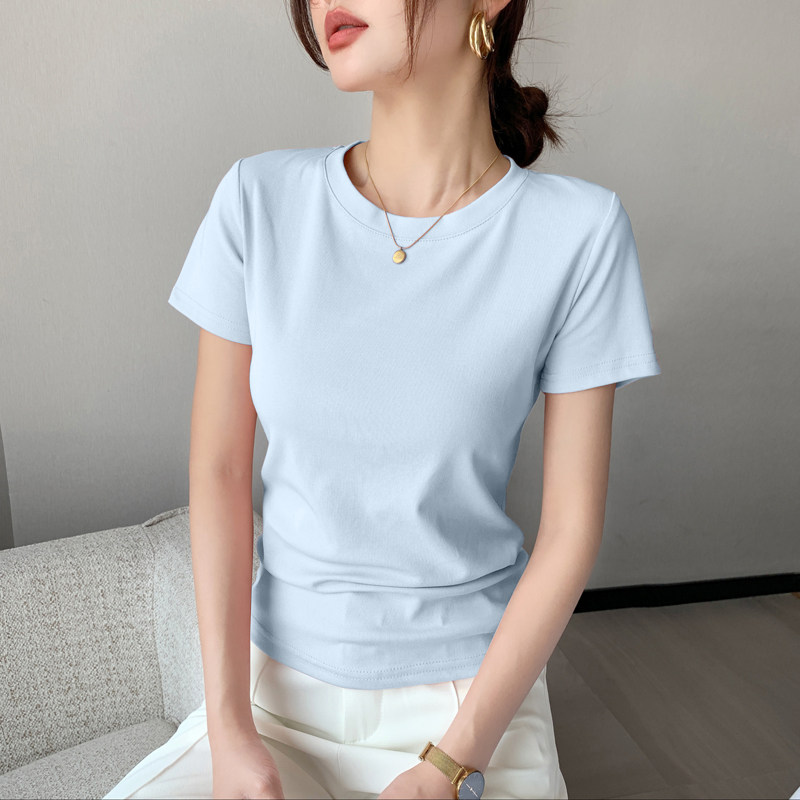 新国货100纯棉t恤女130支双面丝光棉短袖V圆领宽松大码夏季鸡心领