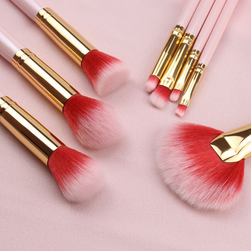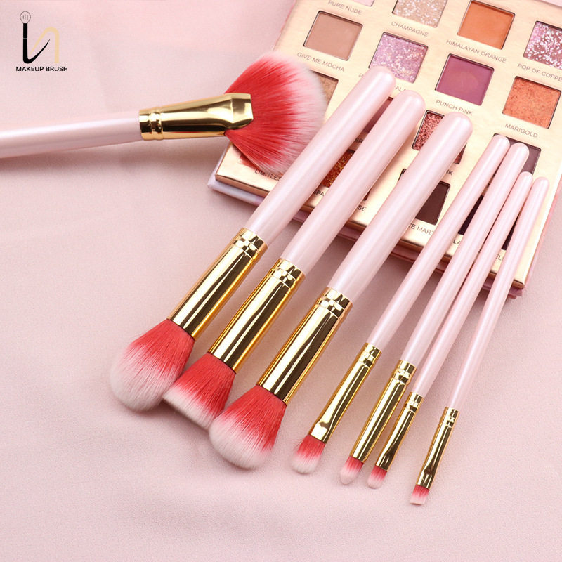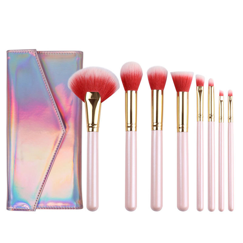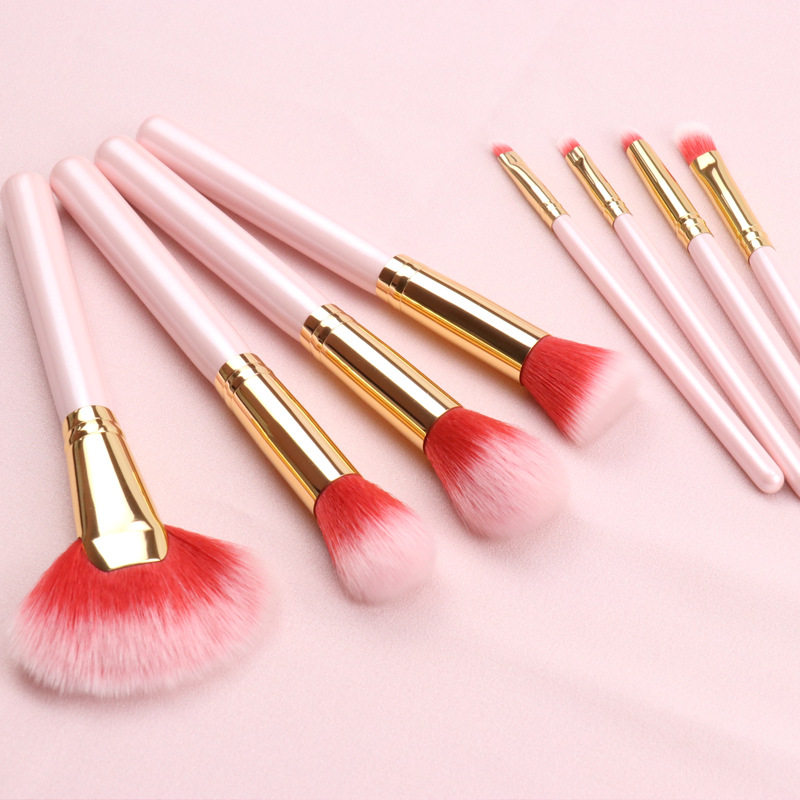 蕾尚8支粉色木柄化妆刷眼部刷散粉平头粉底刷套装美妆工具粉底液
