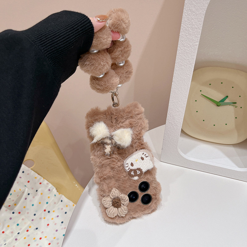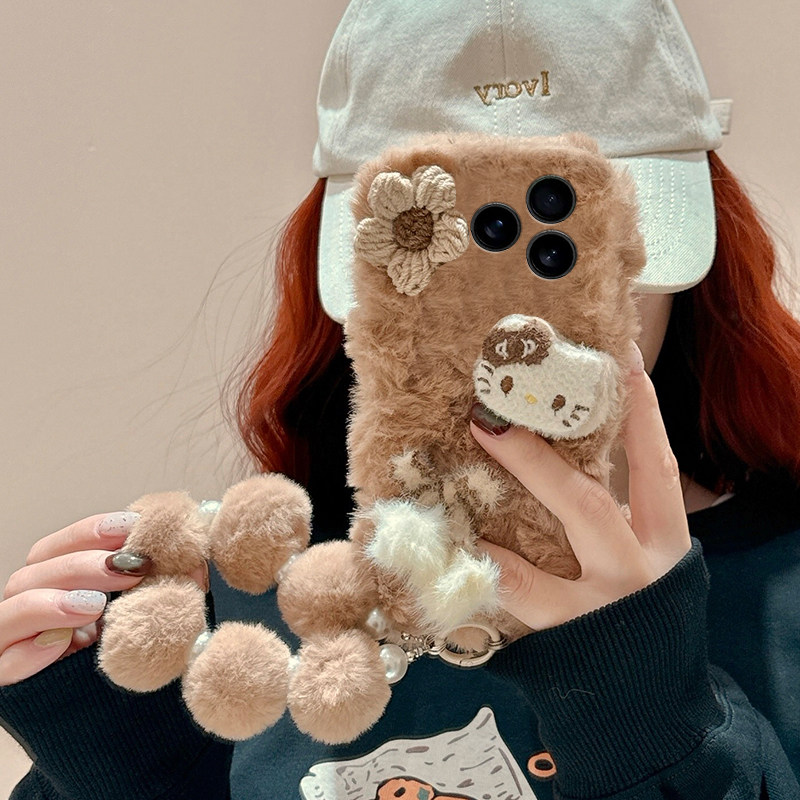 花朵凯蒂猫适用苹果17air手机壳iphone16promax卡通15plus挂链14秋冬季13mini迷你12毛绒11毛茸茸xr8/7xsmax6