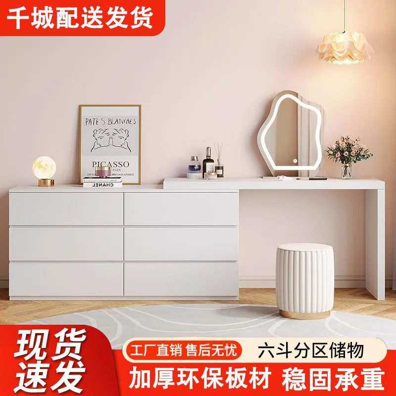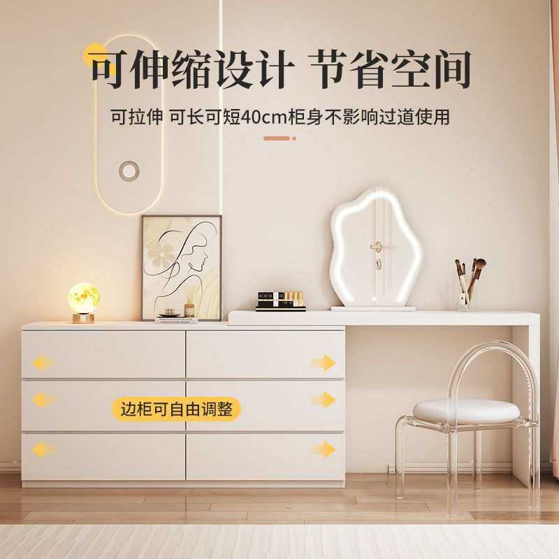 梳妆台化妆桌可伸缩翻盖卧室化妆镜坐凳一体斗柜化妆床头柜收纳柜