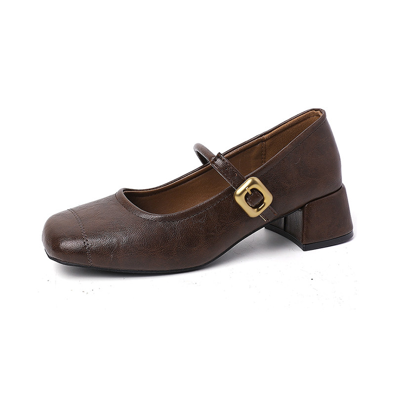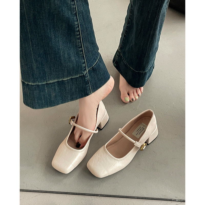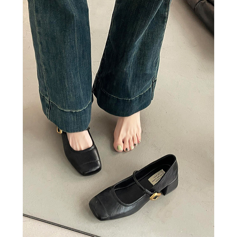 法式复古玛丽珍鞋女2025年秋季新款浅口方头粗中跟配裙子单鞋圆头