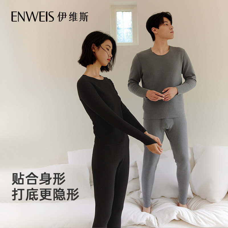 【无痕自发热】三福秋冬季打底修身长袖秋衣秋裤男保暖内衣套装女