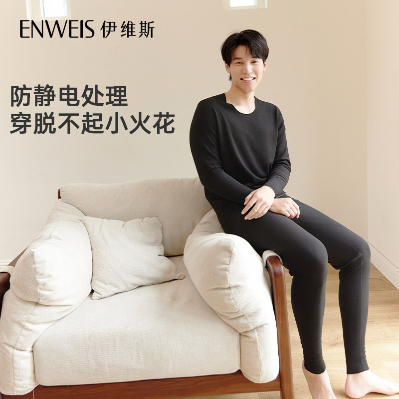 【厚贴贴暖衣男】加厚款-伊维斯抗静电红外线保护抗菌秋衣裤套装