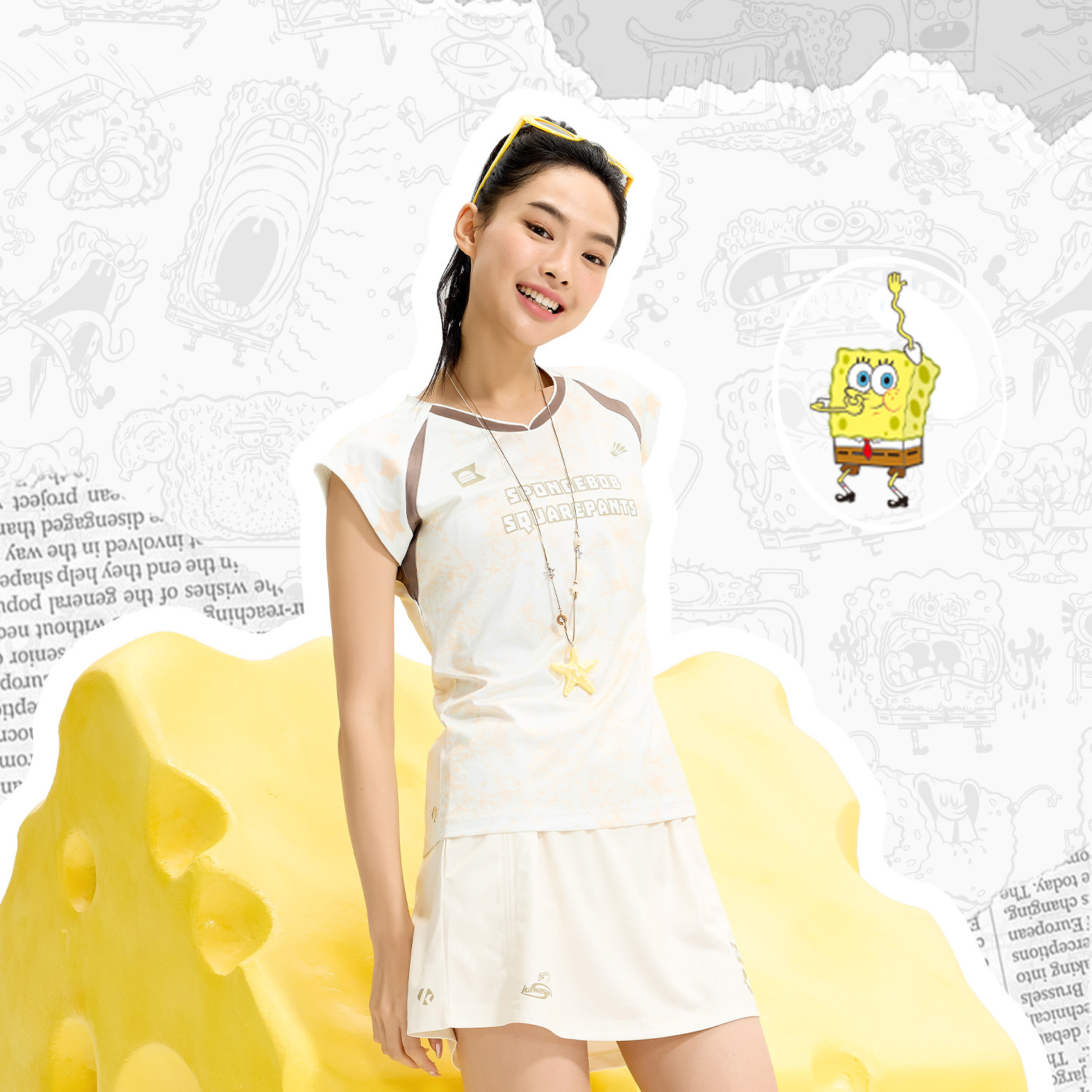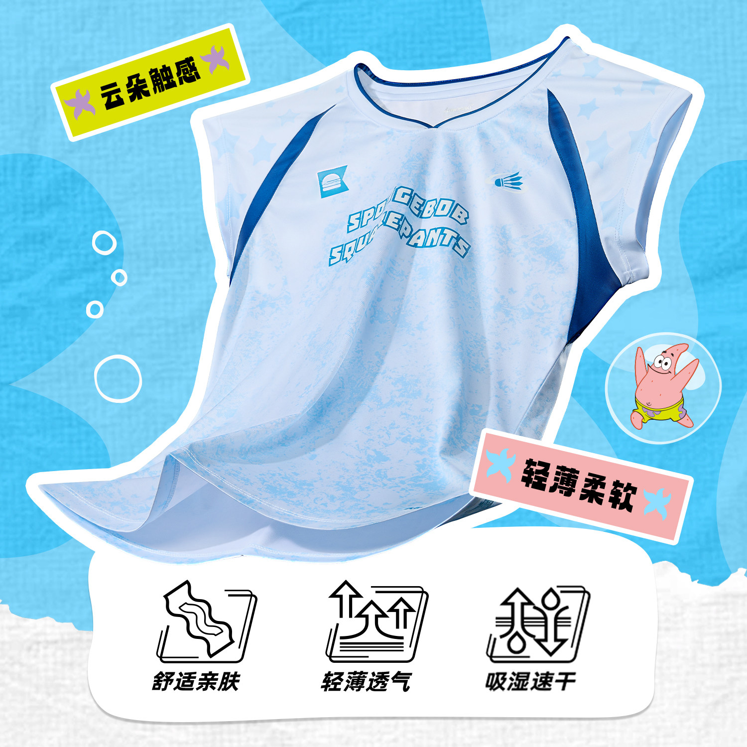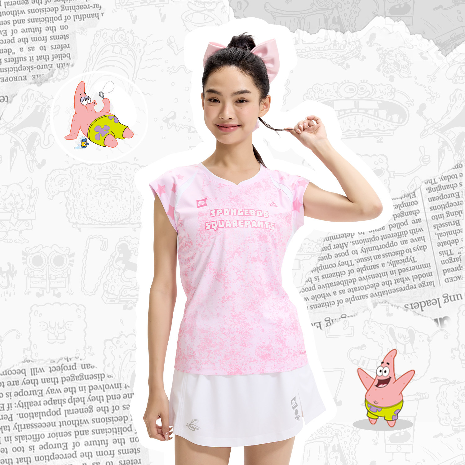 kawasaki川崎羽毛球服女海绵宝宝系列夏日活力撞色小飞袖运动套装