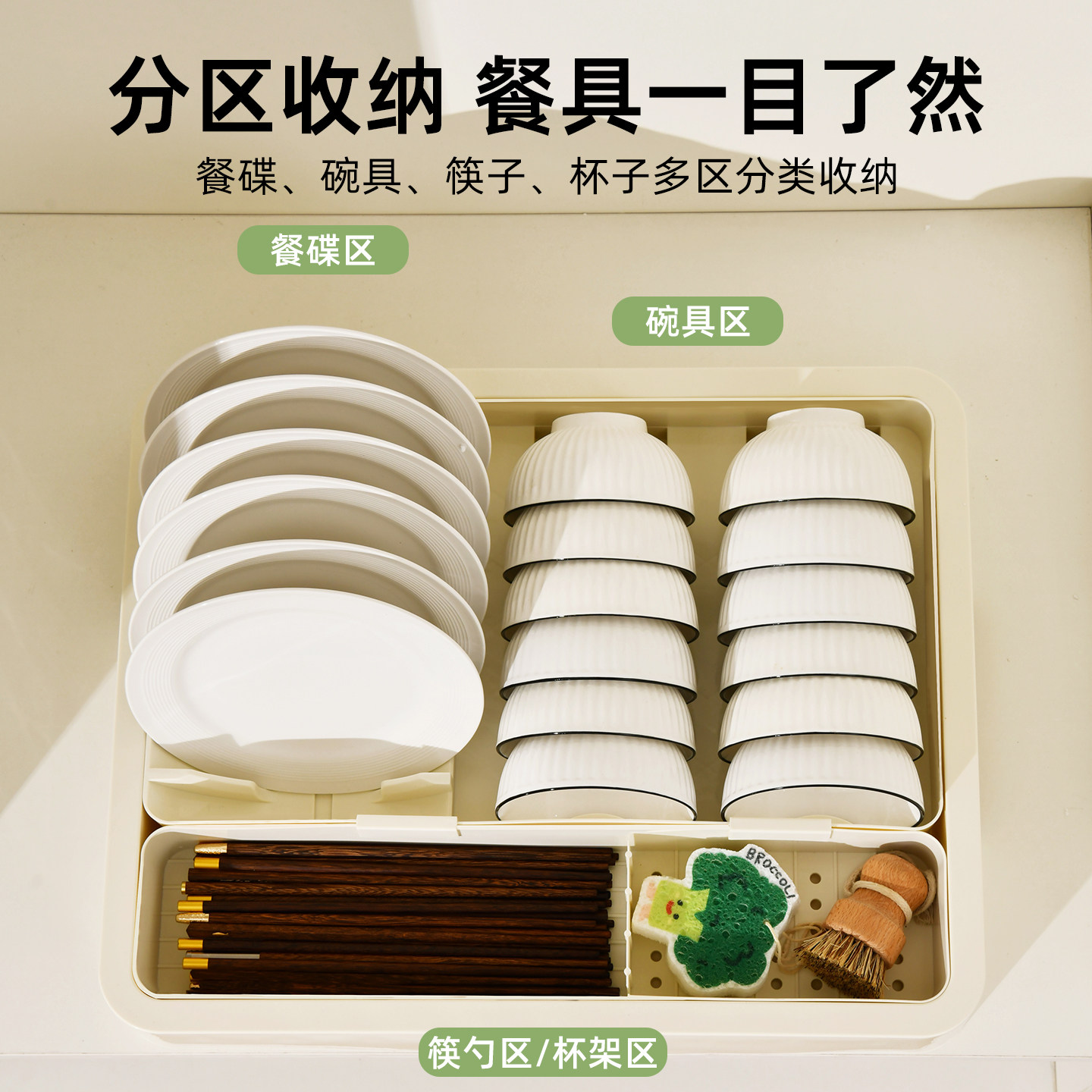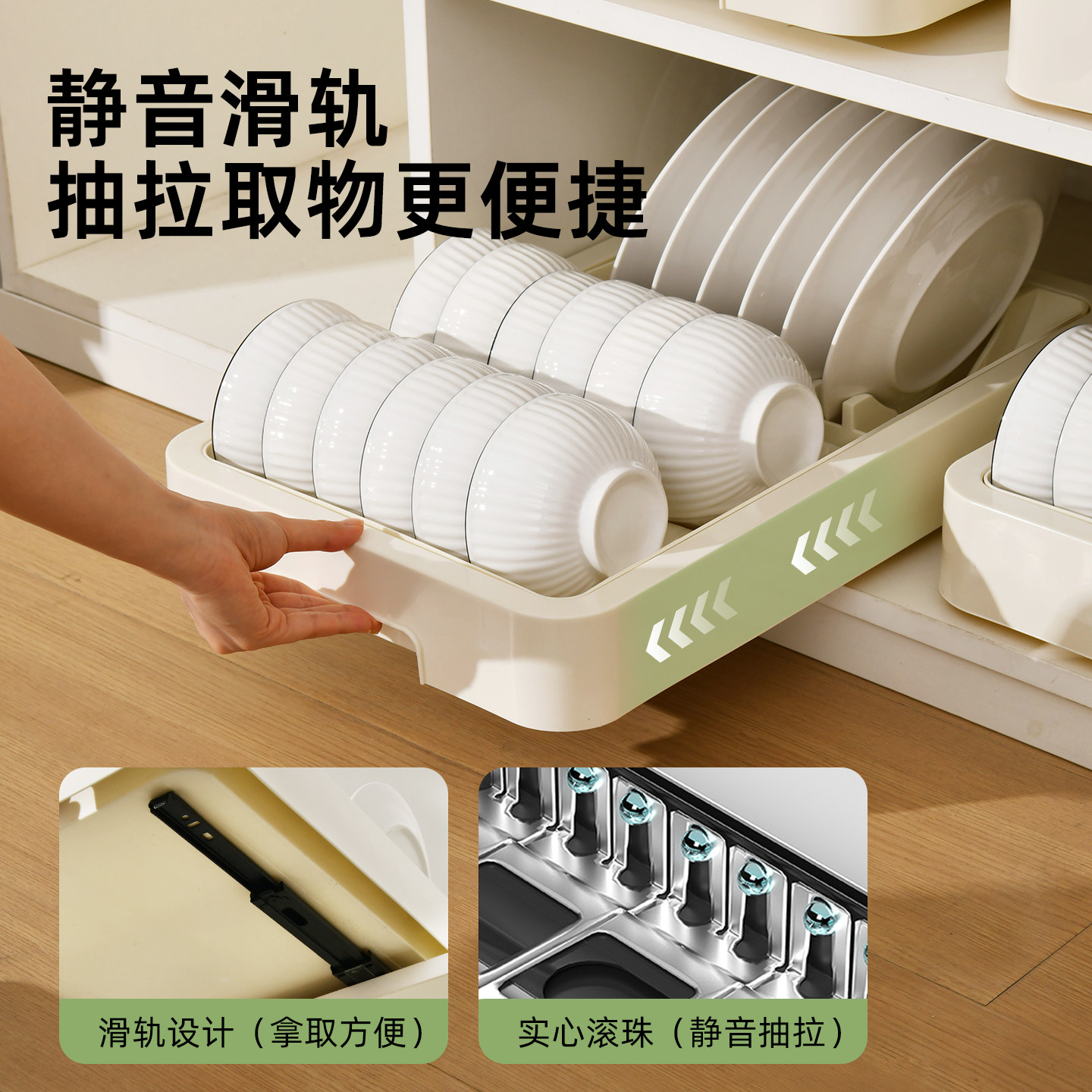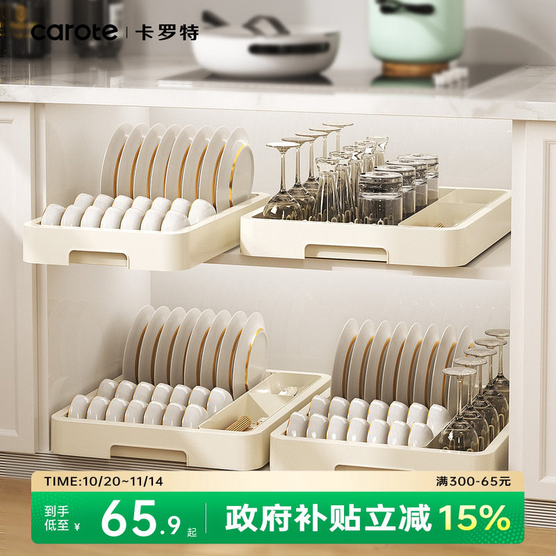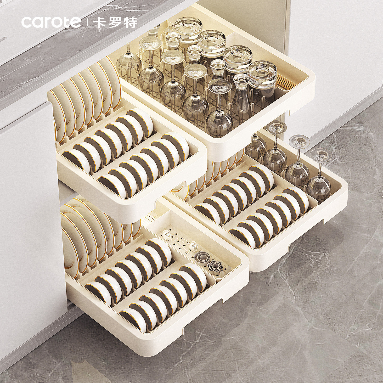 卡罗特可抽拉碗架抽屉内置拉篮筷勺碗盘沥水架厨房橱柜碗碟收纳架