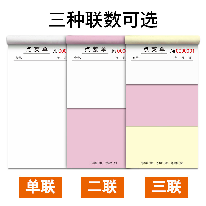 加厚点菜单一联二联三联烧烤店餐厅饭店定制菜单本无碳手写单饭店餐饮烧烤点菜单酒水单定做通用餐饮加厚垫板