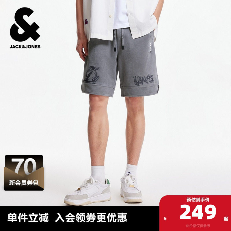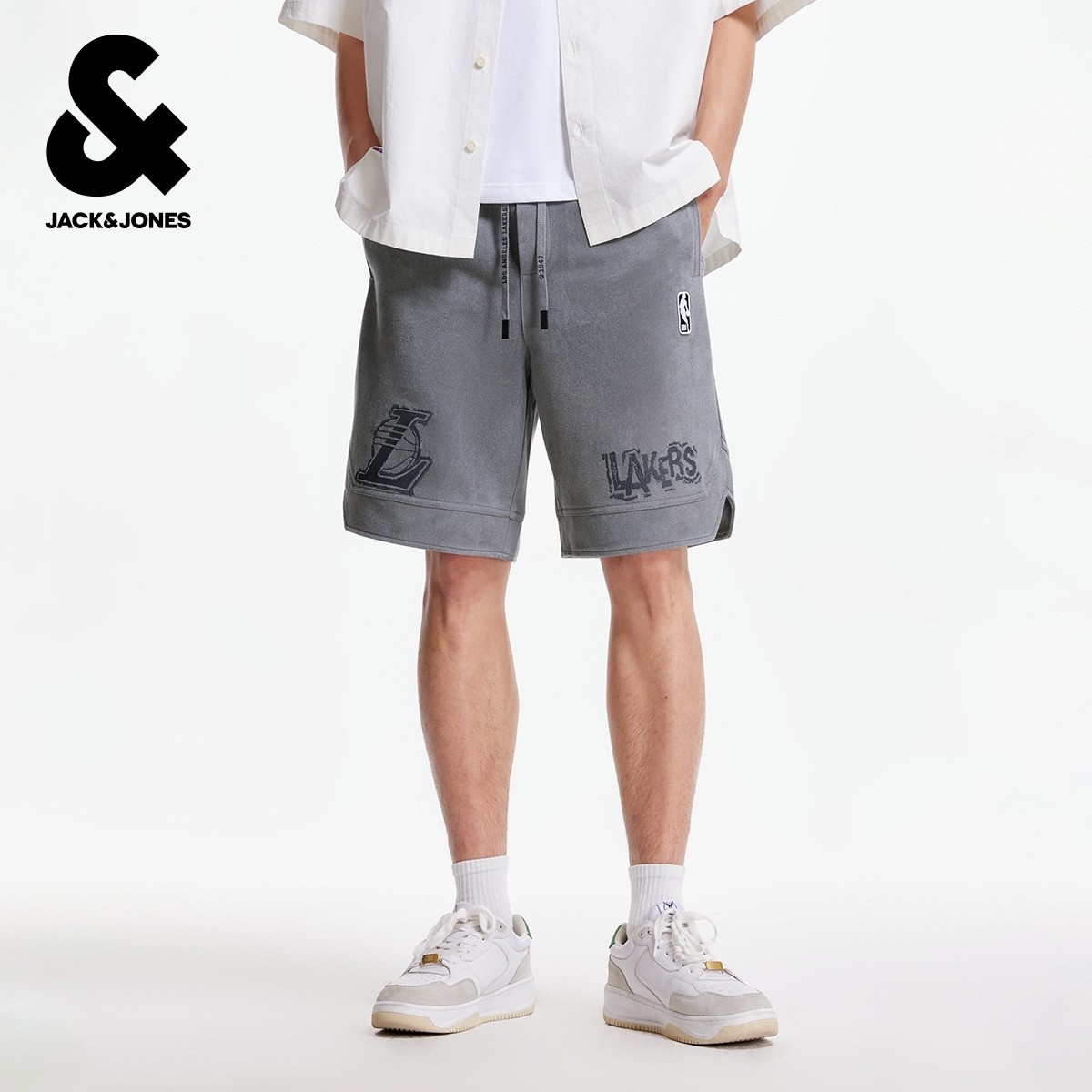 杰克琼斯NBA联名秋季男装短裤湖人队字母刺绣潮时尚运动百搭裤子