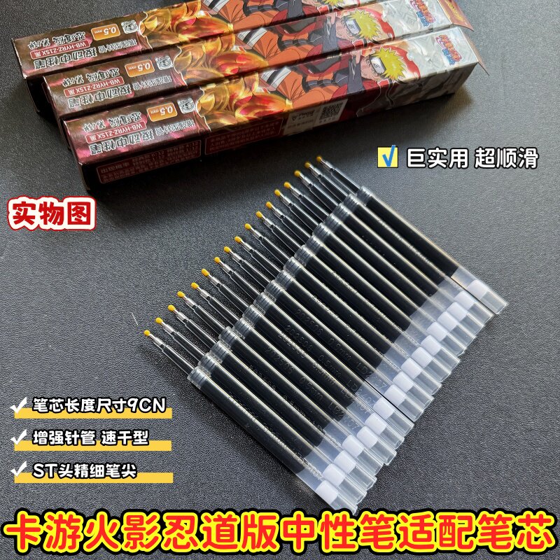 卡游火影忍者中性笔忍道版笔芯燃动版替换芯按动芯0.5mm黑色速干