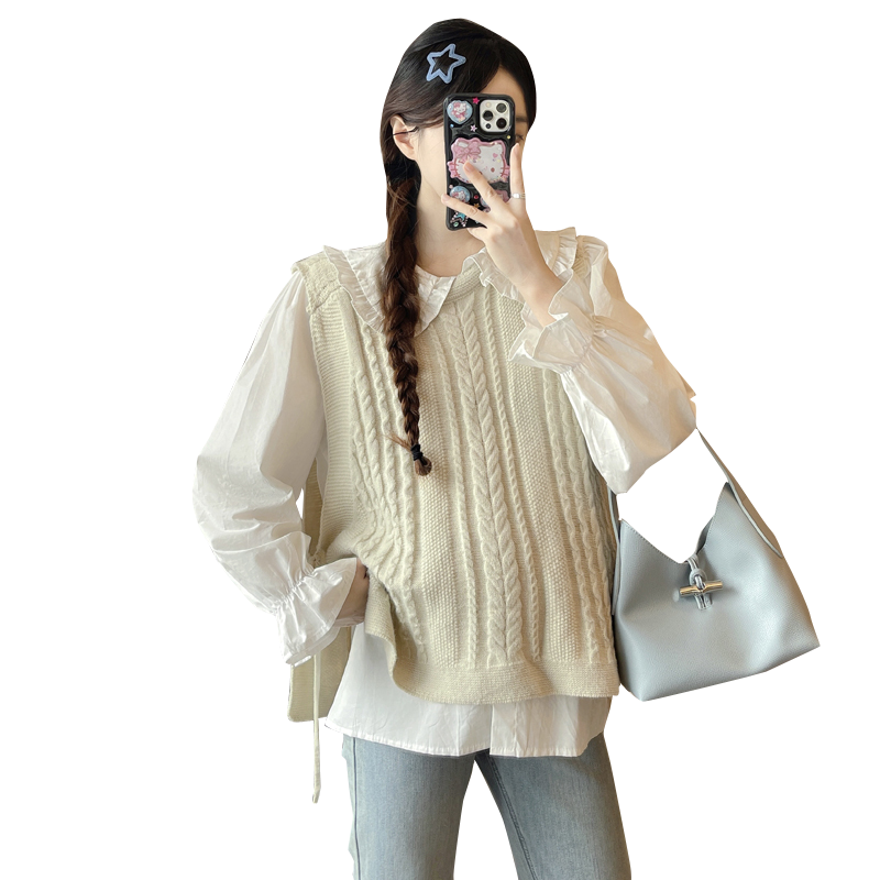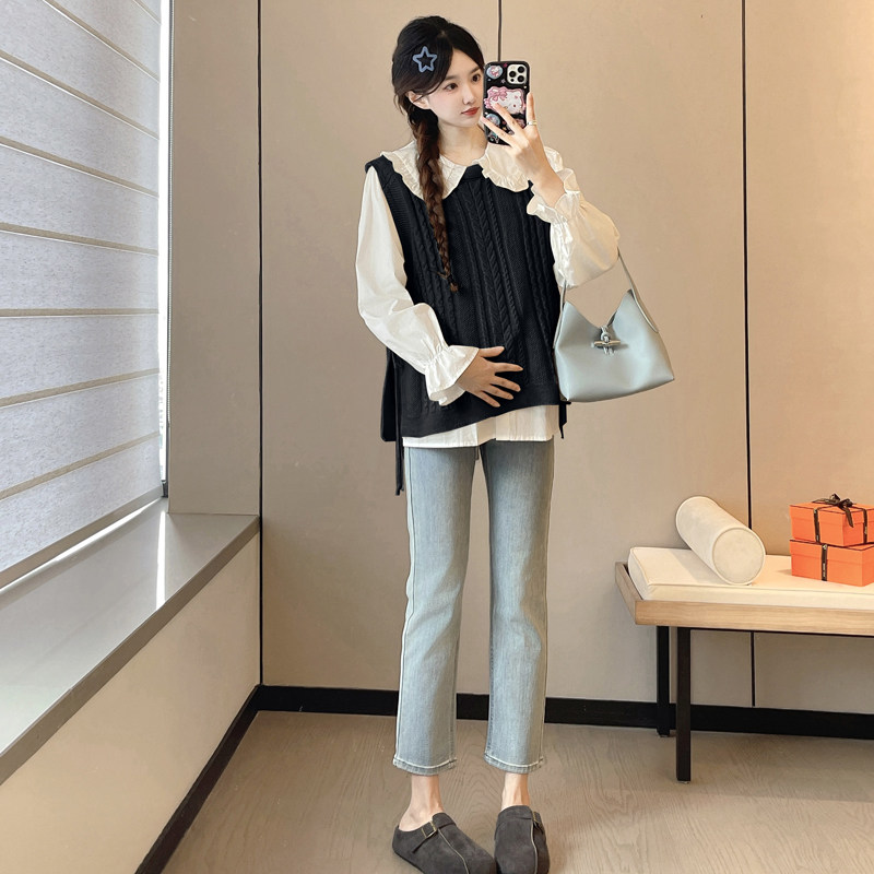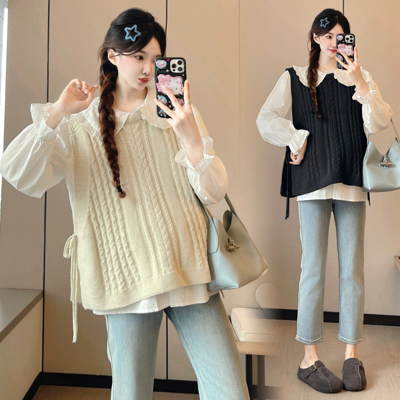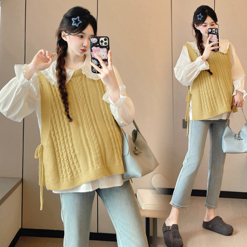 婧麒秋季款孕妇装衣服孕妈马甲高级时尚宽松不勒肚衬衫两件套女装