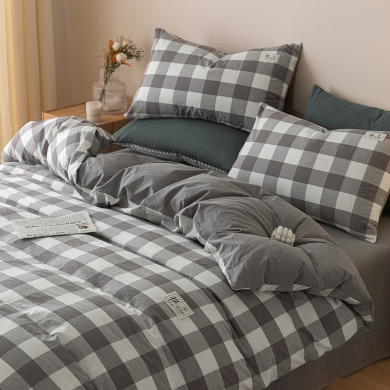 纯棉被套单件200x230全棉水洗棉被罩150x200学生被单三件套男格子