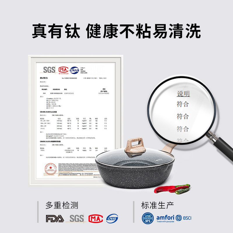 卡罗特不粘锅炒锅家用麦饭石炒菜锅平底不沾钛锅电磁炉燃气灶专用